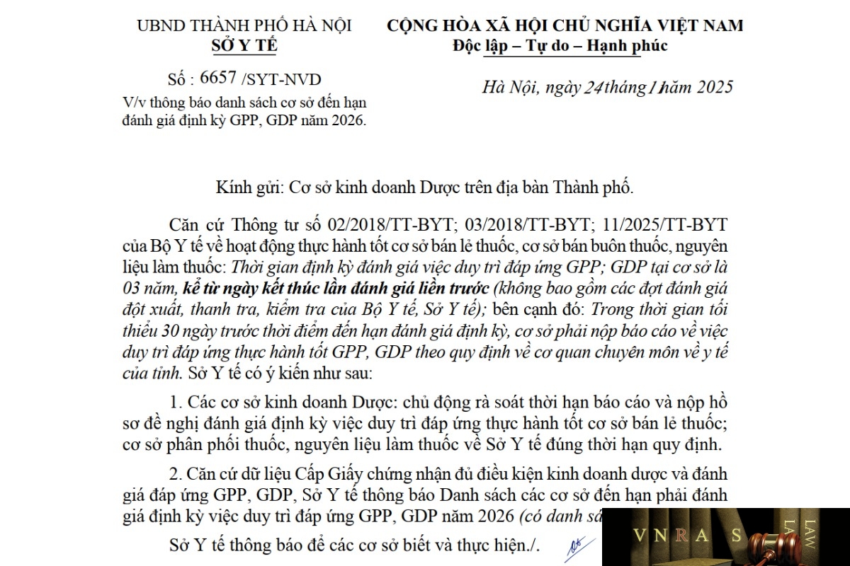 2. Căn cứ dữ liệu Cấp Giấy chứng nhận đủ điều kiện kinh doanh dược và đánh giá đáp ứng GPP, GDP, Sở Y tế thông báo Danh sách các cơ sở đến hạn phải đánh giá định kỳ việc duy trì đáp ứng GPP, GDP năm 2026 (có danh sách kèm theo).
