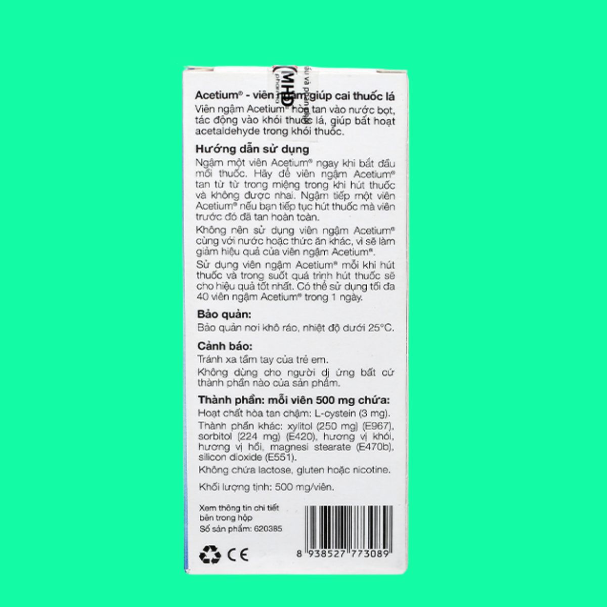Acetium Lozenge được sử dụng như một giải pháp hỗ trợ trong quá trình giảm thói quen hút thuốc lá. Viên ngậm giúp làm giảm ảnh hưởng của các chất độc sinh ra trong khói thuốc tại khoang miệng, từ đó hạn chế cảm giác thèm hút và góp phần nâng cao khả năng từ bỏ thuốc lá khi sử dụng đều đặn.