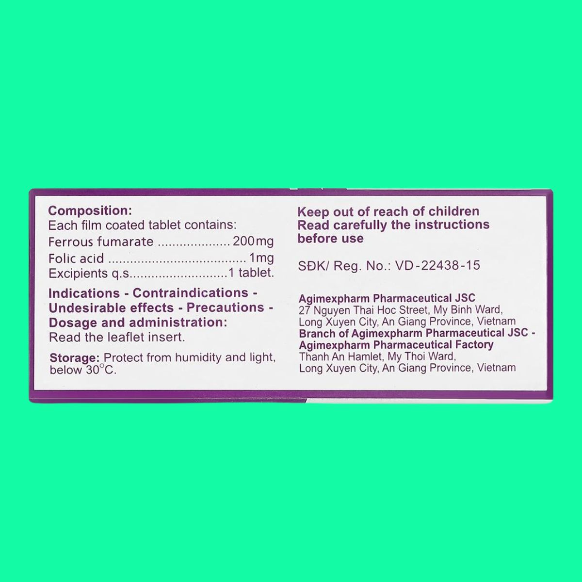 - Sắt (II) fumarat tương đương Sắt nguyên tố………….200mg