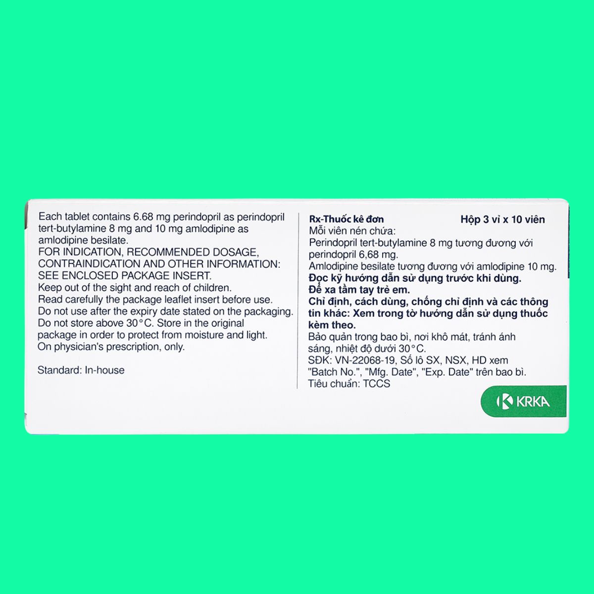 Amlessa 4mg/10mg Tablets có thành phần chính là Perindopril và Amlodipin 4mg/10mg, được sản xuất bởi KRKA, d. d., Novo mesto, điều trị tăng huyết áp