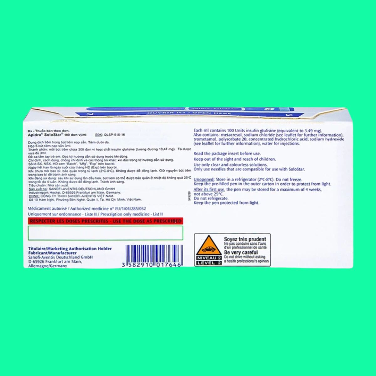 Apidra Solostar 100IU/ml điều trị tiểu đường hiệu quả