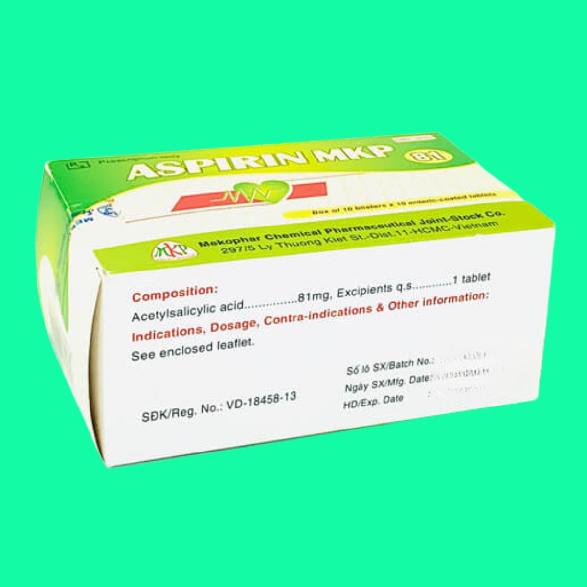 Trong bài viết này, dược sĩ Lưu Văn Hoàng giới thiệu đến các bạn thuốc Aspirin MKP 81 được sản xuất bởi Công ty cổ phần hóa-dược phẩm Mekophar có số đăng ký lưu hành tại Việt Nam là 893110903624 (SĐK cũ: VD-34335-20)