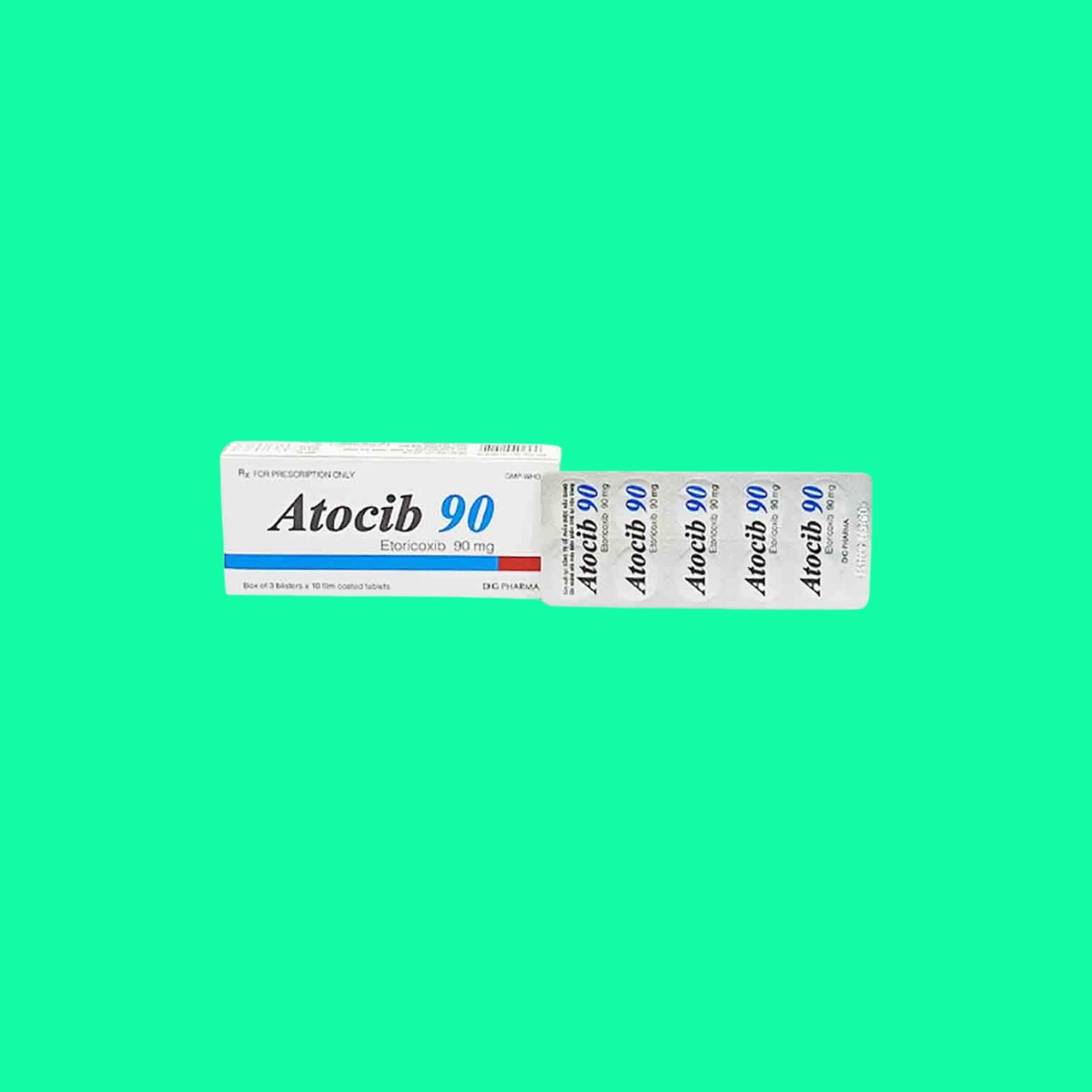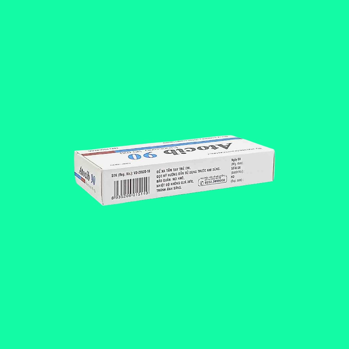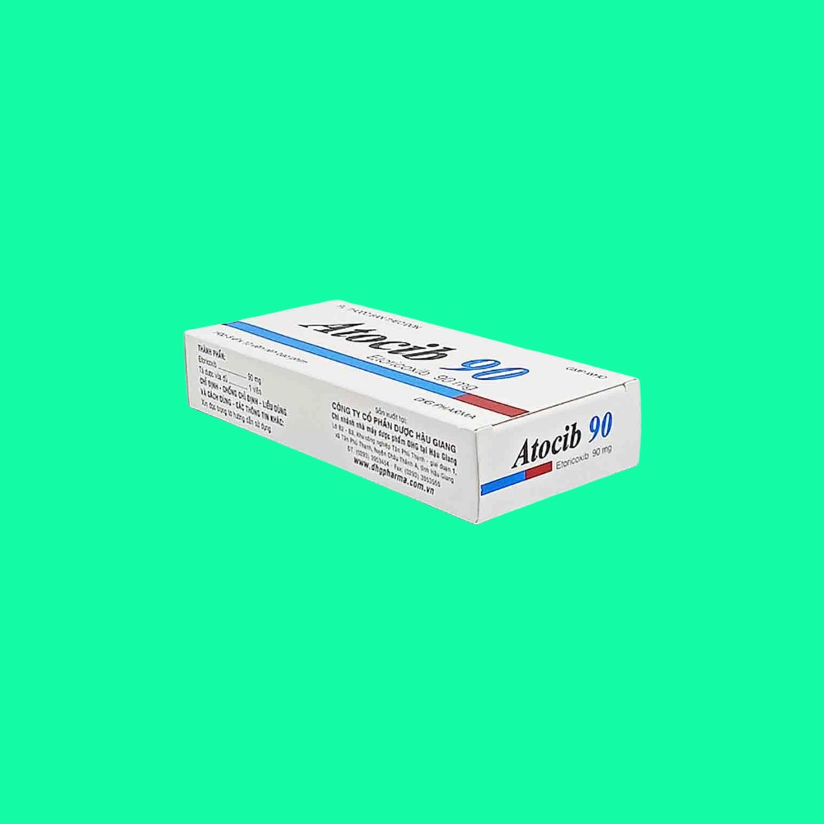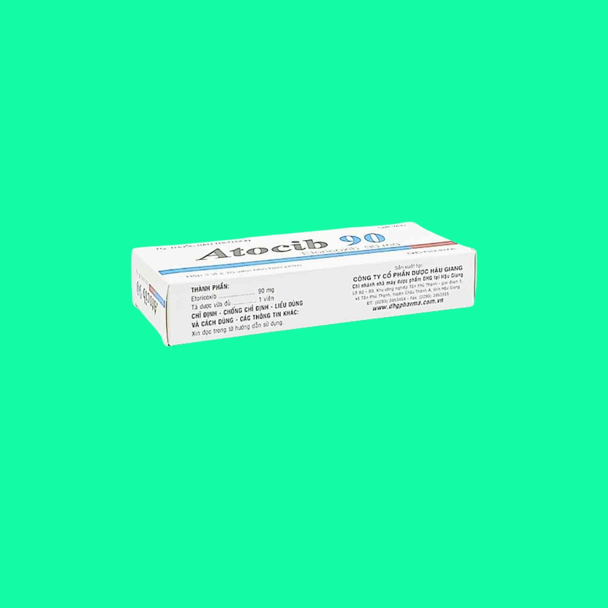 Sản phẩm thuốc Atocib 90 được sản xuất bởi Công Ty Cổ Phần Dược Hậu Giang – Chi nhánh nhà máy dược phẩm DHG tại Hậu Giang, có số đăng ký lưu hành tại Việt Nam là 893110268323 (VD-29520-18).