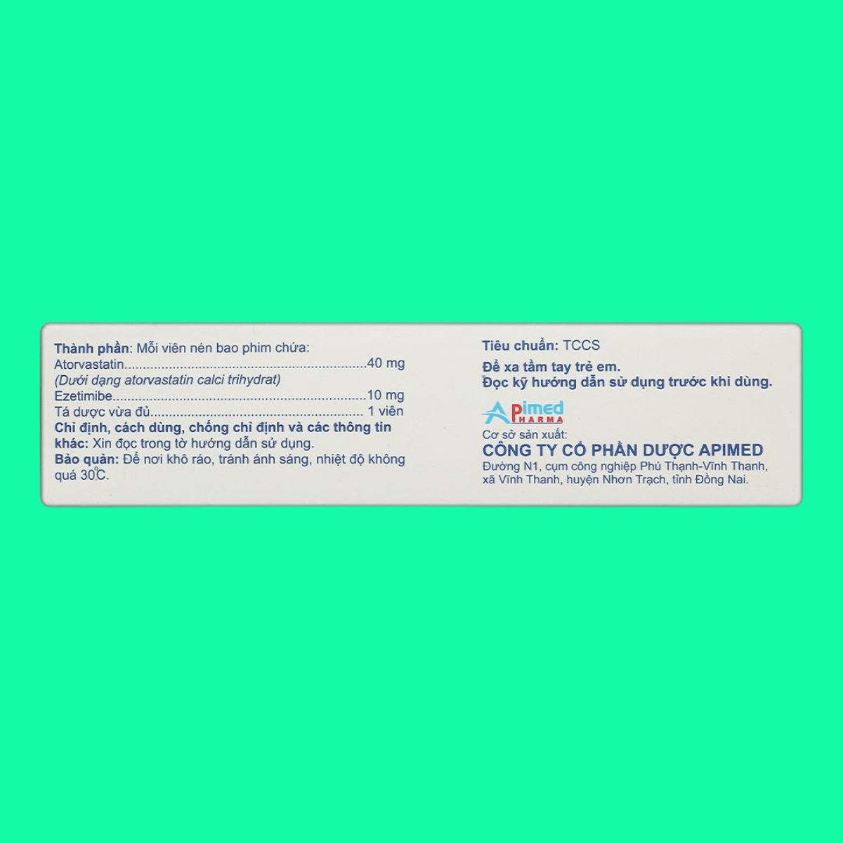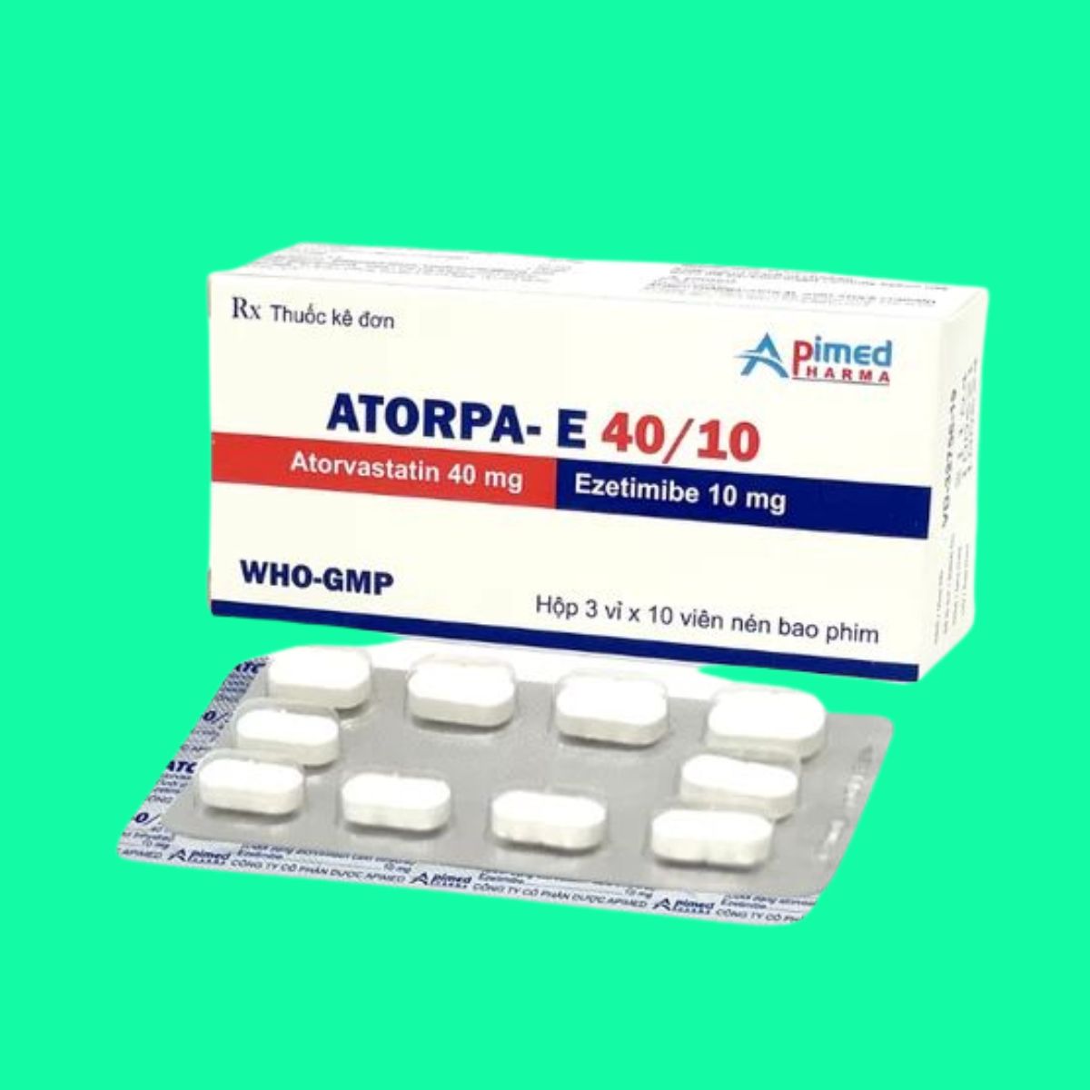 Trong bài viết này, dược sĩ Lưu Văn Hoàng giới thiệu đến các bạn sản phẩm thuốc Atorpa- E 40/10 được sản xuất bởi Công ty cổ phần dược Apimed, có số đăng ký lưu hành tại Việt Nam là 893110200000 (SĐK cũ: VD-32756-19).