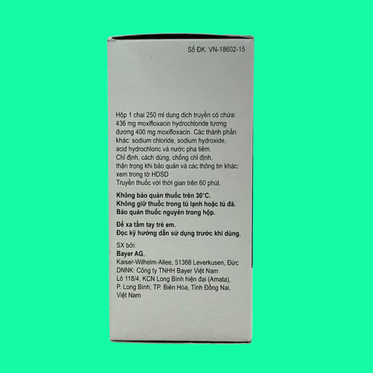 Hàm lượng Moxifloxacin (dưới dạng Moxifloxacin hydroclorid) 400mg/250ml