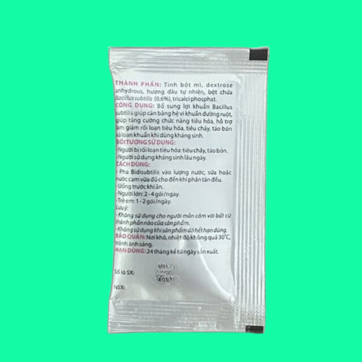 Không dùng sản phẩm BidiSubtilis đã quá hạn sử dụng hoặc bao bì hư hỏng.