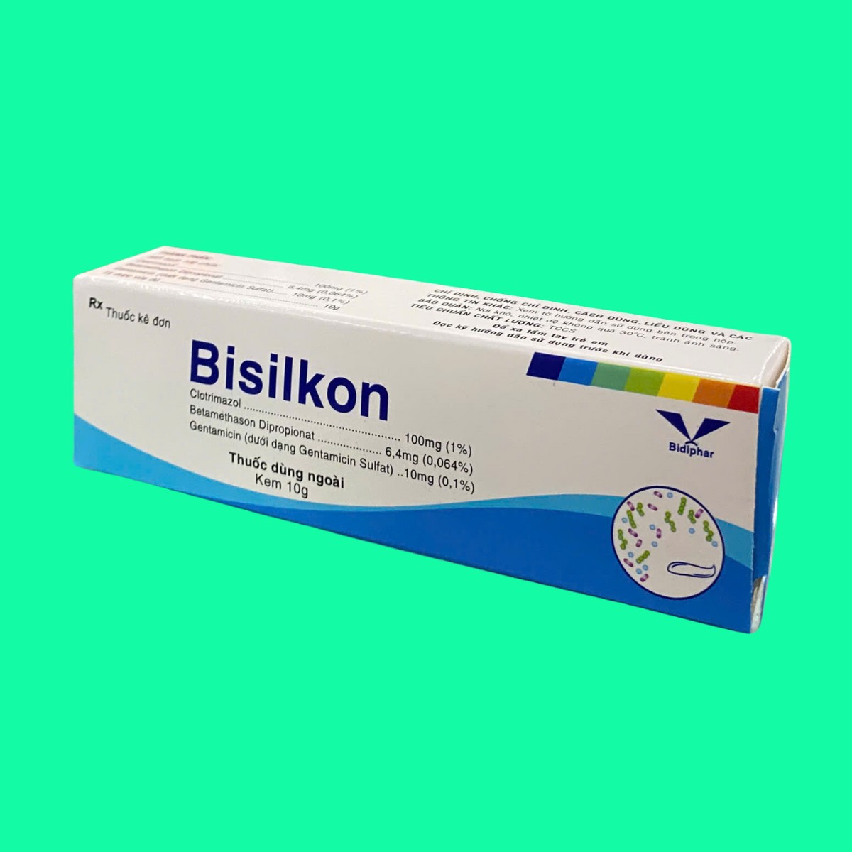 Thuốc Bisilkon là thuốc được dùng trong điều trị nhiễm nấm ngoài da, viêm da tiếp xúc khi đã có biến chứng nhiễm trùng, tình trạng nhiễm nấm da gặp trong một số bệnh như hắc lào, lang ben hay viêm da dị ứng như eczema, vẩy nến, …