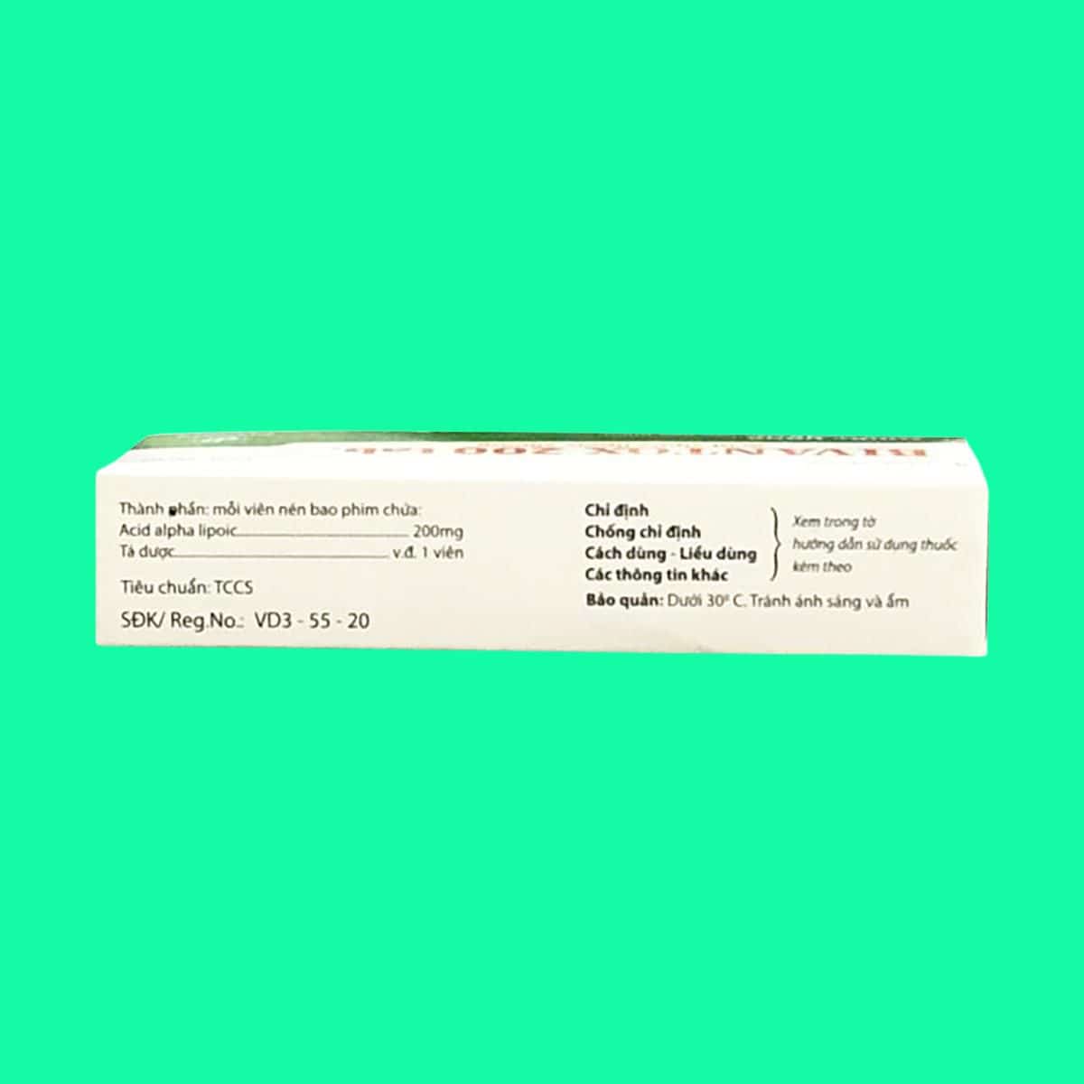 Thuốc Bivantox 200 tab có chứa thành phần: Alpha lipoic acid 200mg