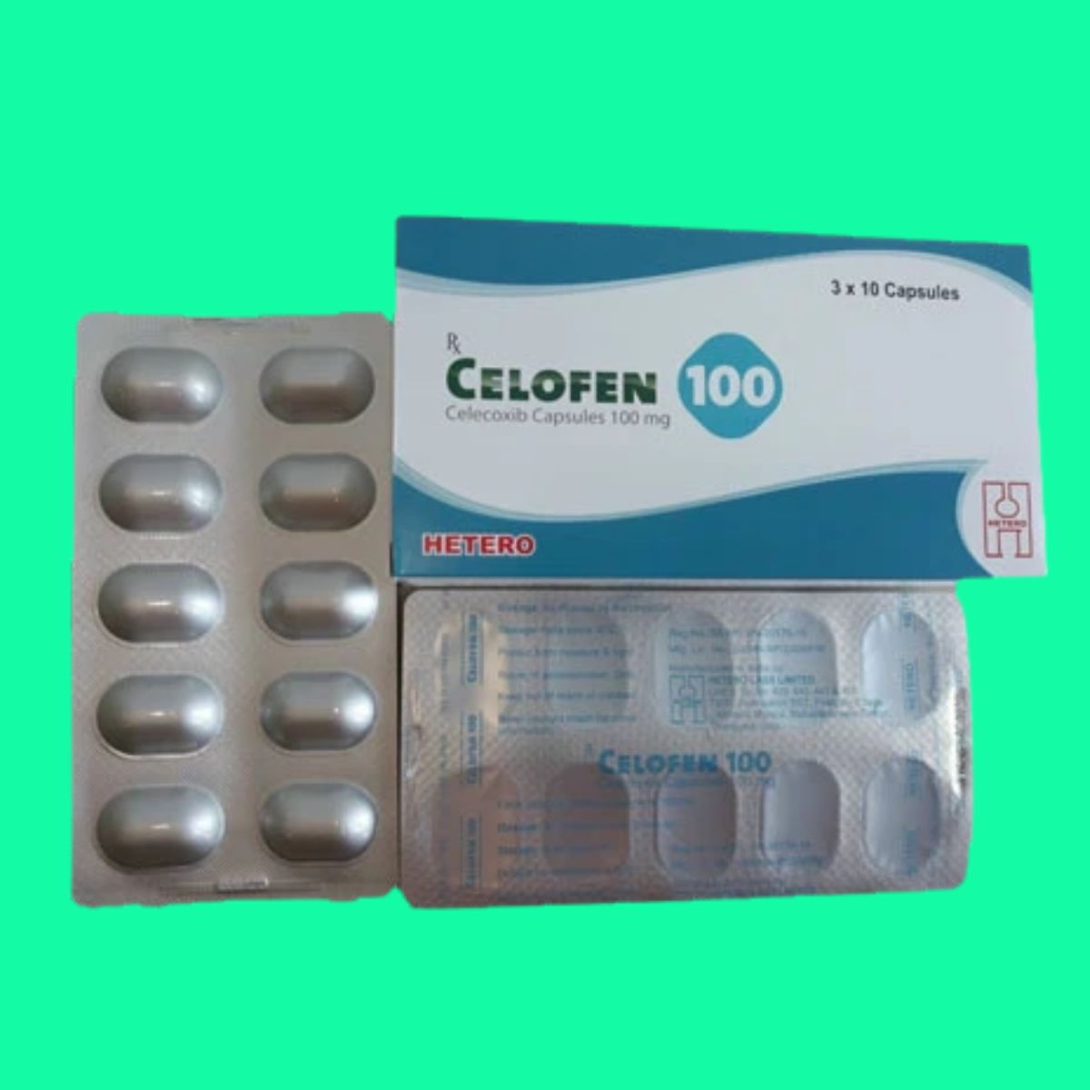 Thuốc Celofen 100 tác dụng giảm đau, hạ viêm chọn lọc trên enzym COX-2, dùng cho bệnh lý viêm xương khớp, viêm khớp dạng thấp, viêm cột sống dính khớp, đau cấp và đau bụng kinh