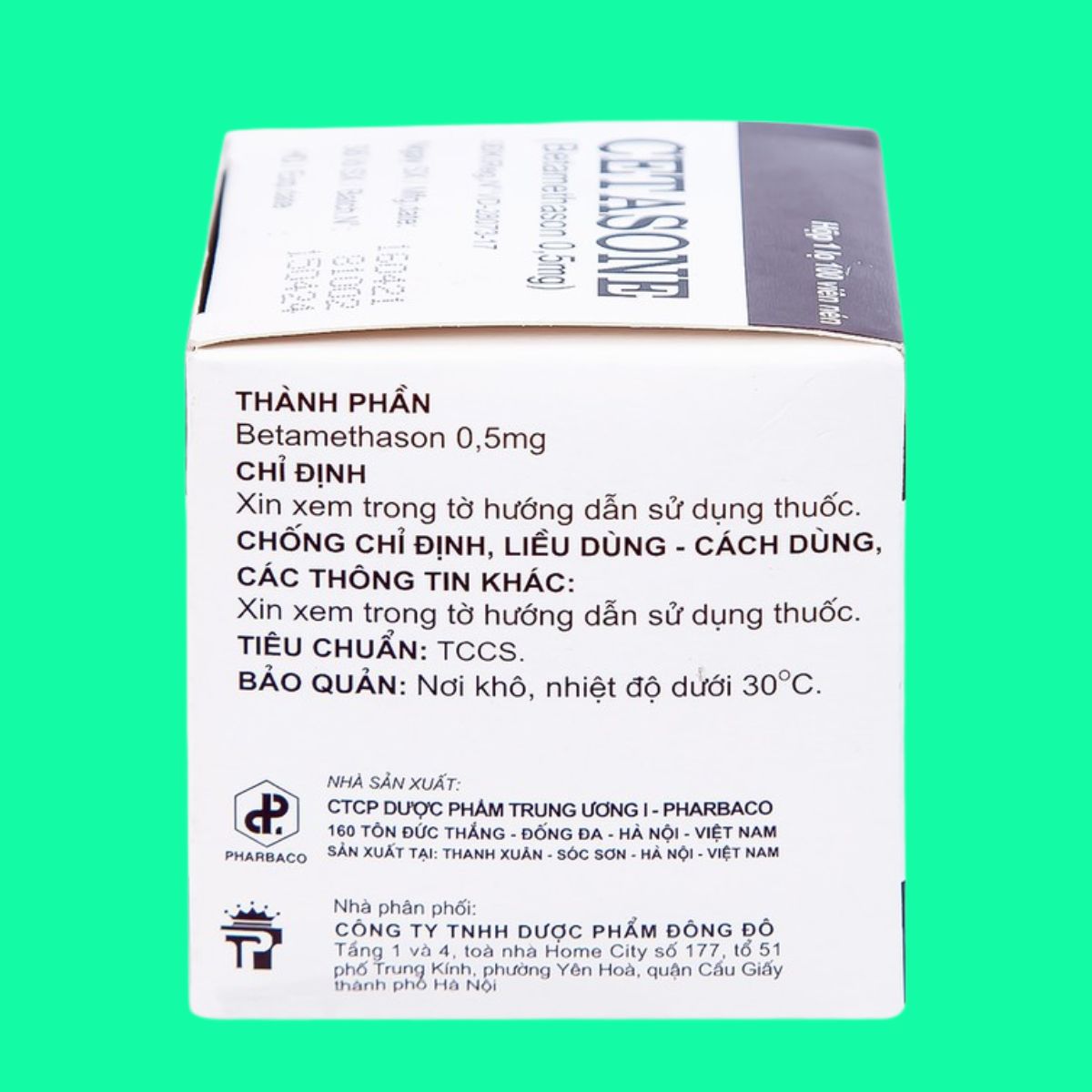 Trong bài viết này, dược sĩ Lưu Văn Hoàng giới thiệu đến các bạn thuốc Cetasone 0.5mg được sản xuất bởi Công ty Cổ phần Dược phẩm Trung ương I – Pharbaco có số đăng ký lưu hành tại Việt Nam là 893110298423 (SĐK cũ: VD-28073-17)