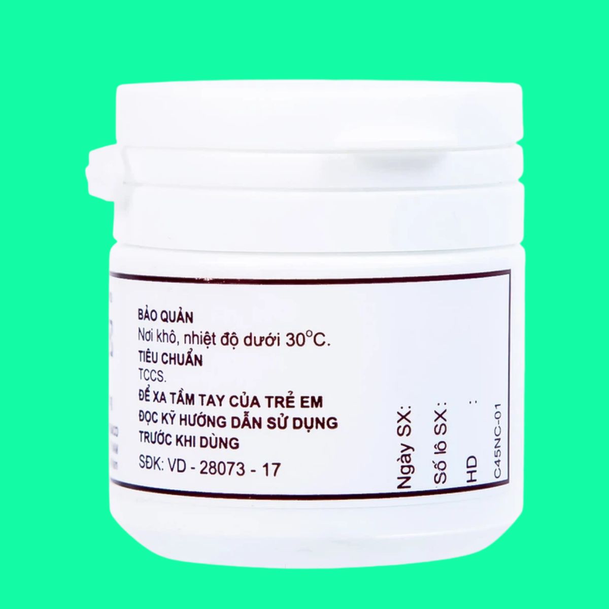 - Tá dược: Lactose 200 mesh, tinh bột sắn, maltodextrin, brilliant blue FCF, acid stearic, magnesi stearat.