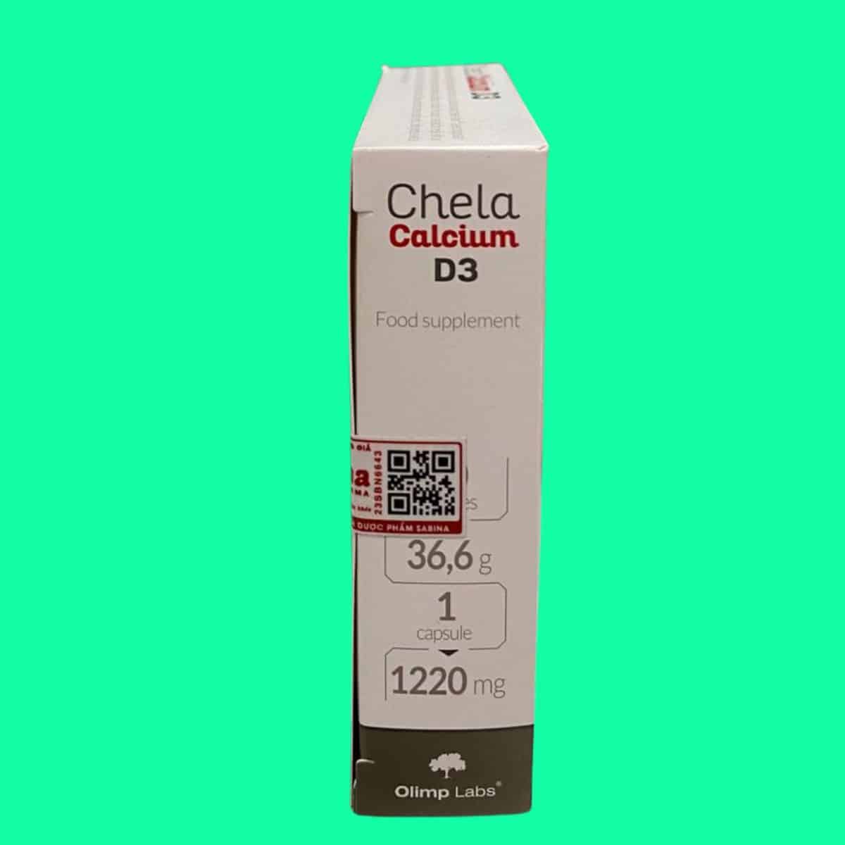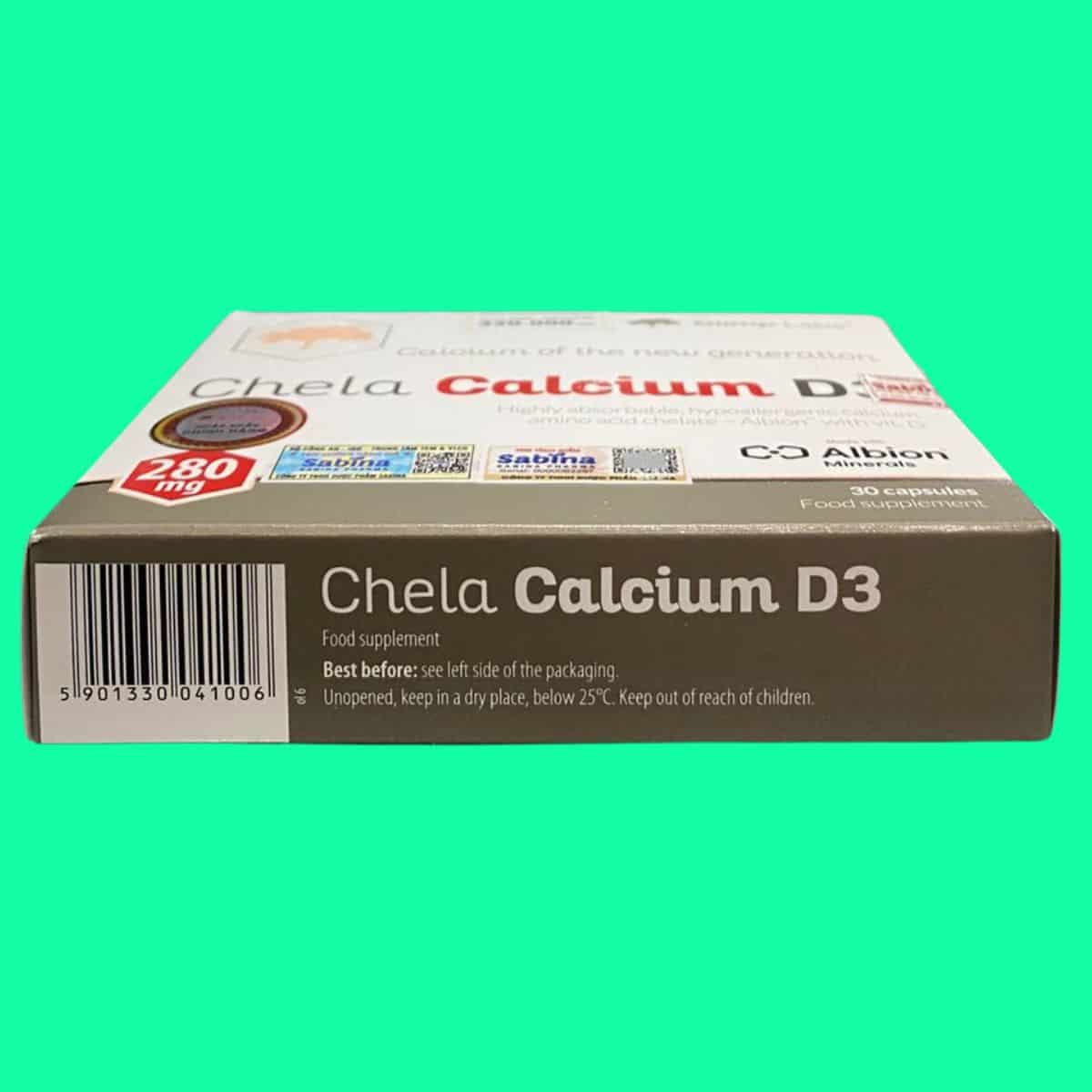 Như đã đề cập ở trên, trong mỗi viên uống Canxi Chela-Calcium D3 có chứa: Calcium bisglycinate hàm lượng 280 mg; Vitamin D3 (Cholecalciferol) hàm lượng 1.67 mcg; và tá dược vừa đủ cho 1 viên nang.