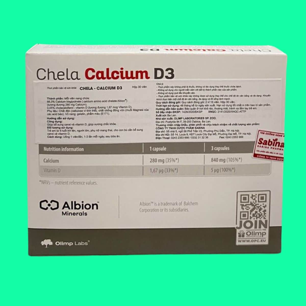 | Nhà sản xuất | Công ty Olimp Laboratories | Công ty TNHH Dược phẩm Sabina. |