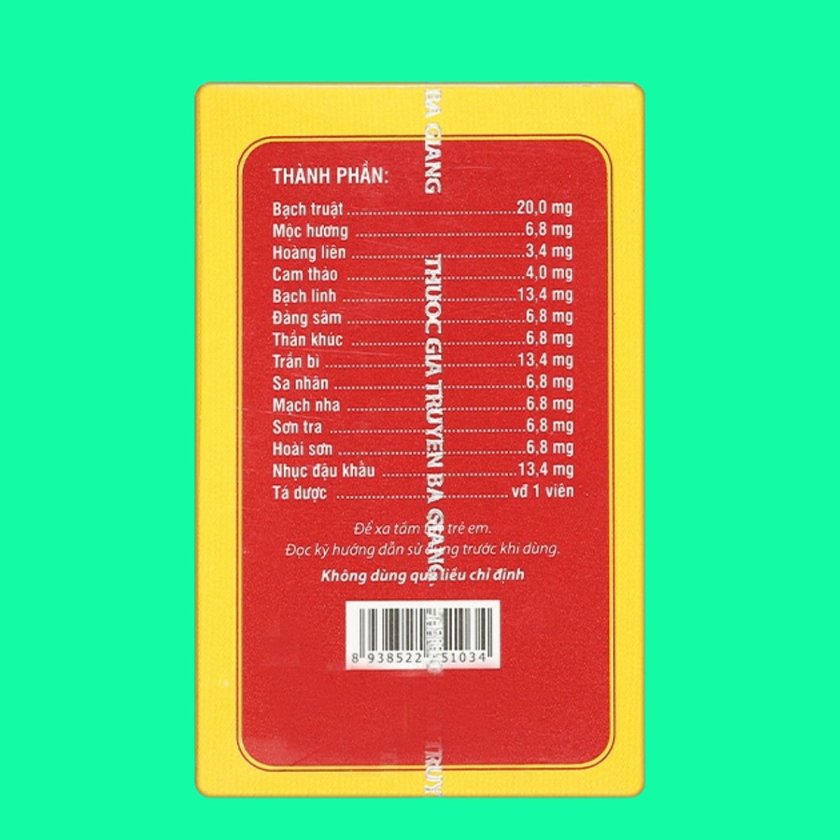 - Trần bì …………………………………….. 13,4 mg