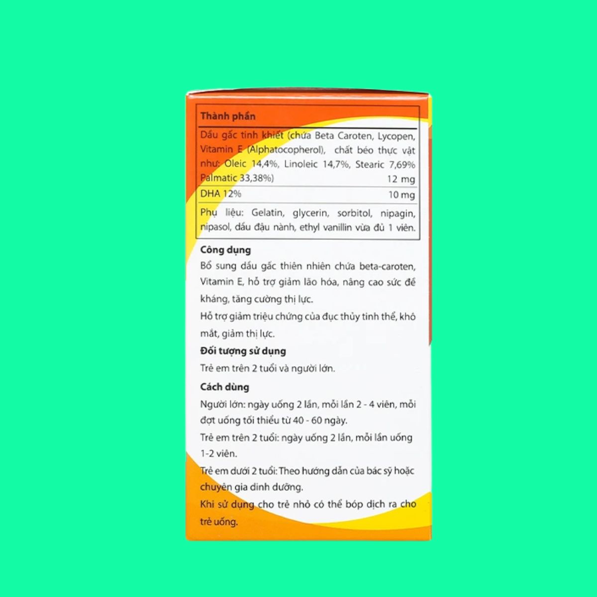 Hàm lượng Dầu gấc tinh khiết 12 ng; DHA 12% 10 mg