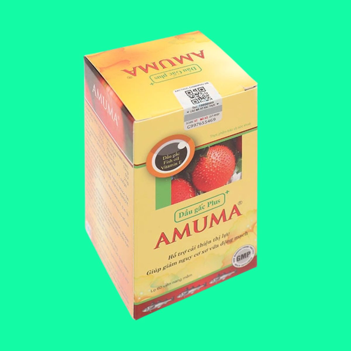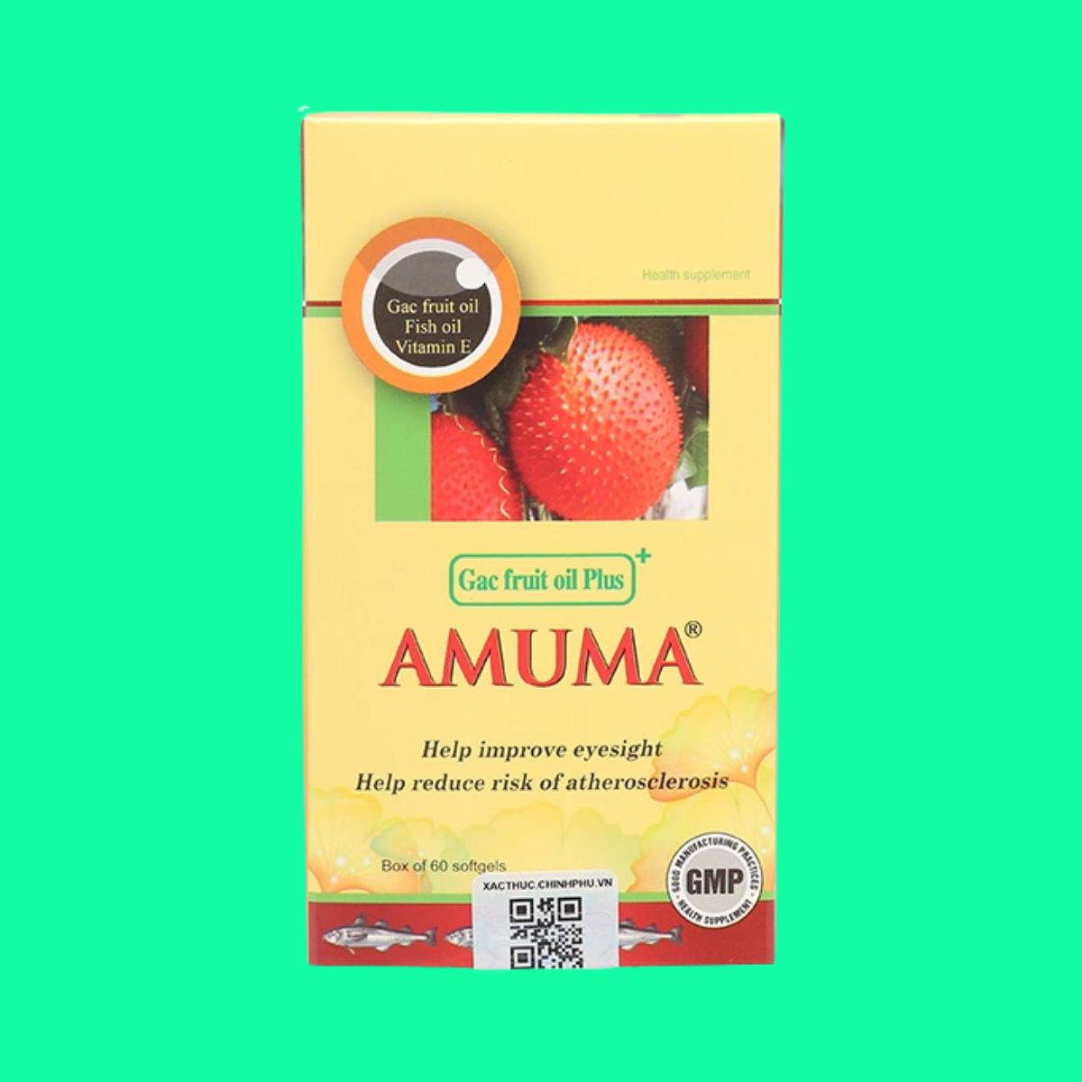 Viên uống Dầu Gấc Plus Amuma hỗ trợ cung cấp các chất chống oxy hóa giúp làm chậm quá trình lão hóa, cải thiện thị lực, cải thiện triệu chứng khô mắt, mỏi mắt, sản xuất bởi CÔNG TY CỔ PHẦN DƯỢC PHẨM GIA NGUYỄN