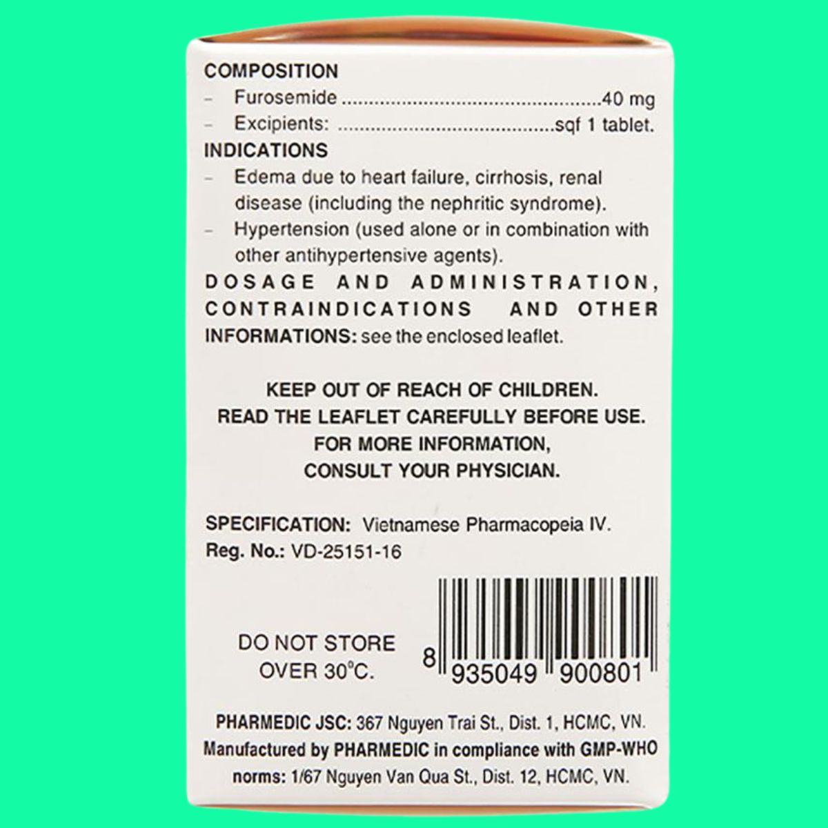 Trong bài viết này, dược sĩ Lưu Văn Hoàng giới thiệu đến các bạn Thuốc Diurefar 40 được sản xuất bởi Công ty cổ phần dược phẩm dược liệu Pharmedic, có số đăng ký lưu hành tại Việt Nam là 893110881624 được đăng ký bởi Công ty cổ phần dược phẩm dược liệu Pharmedic