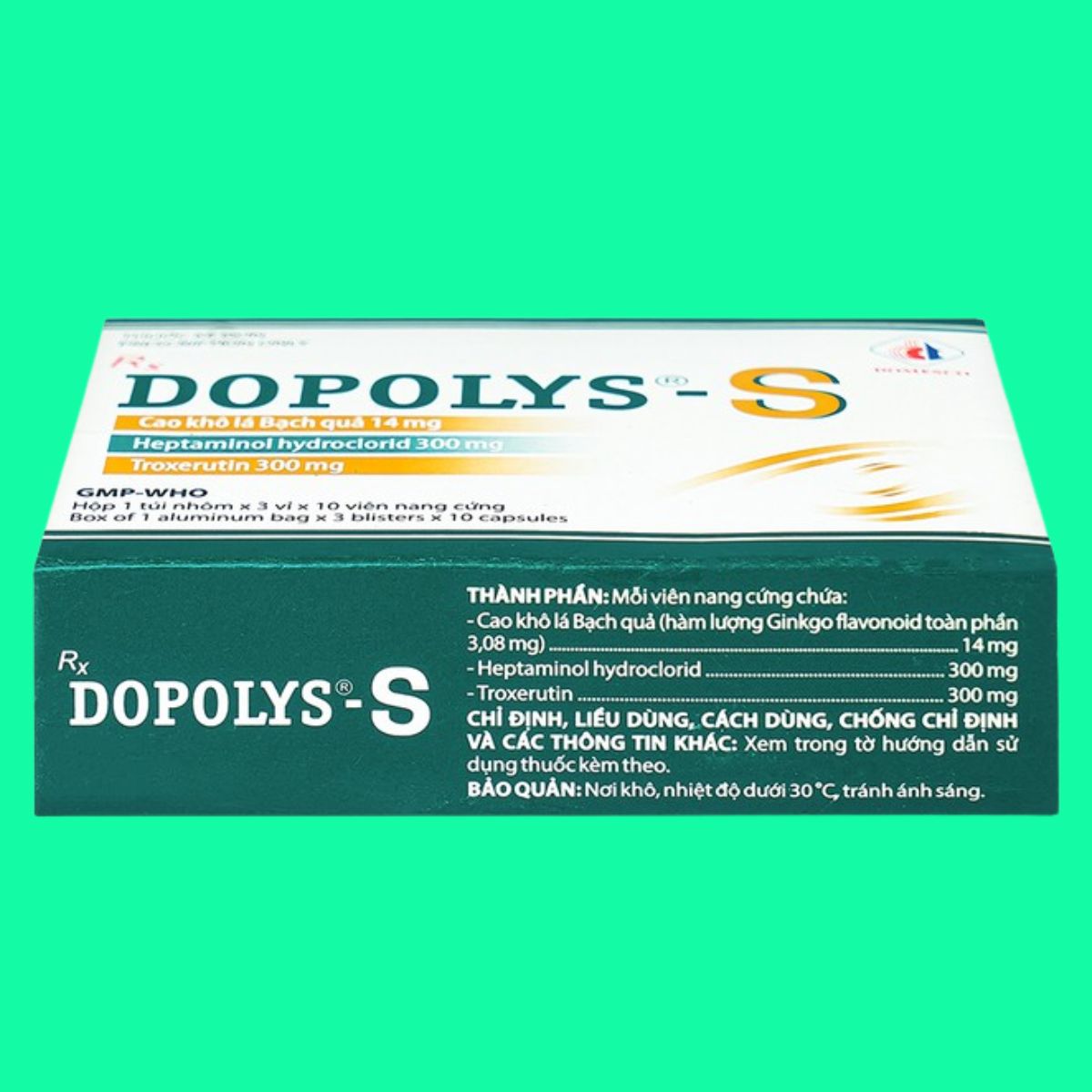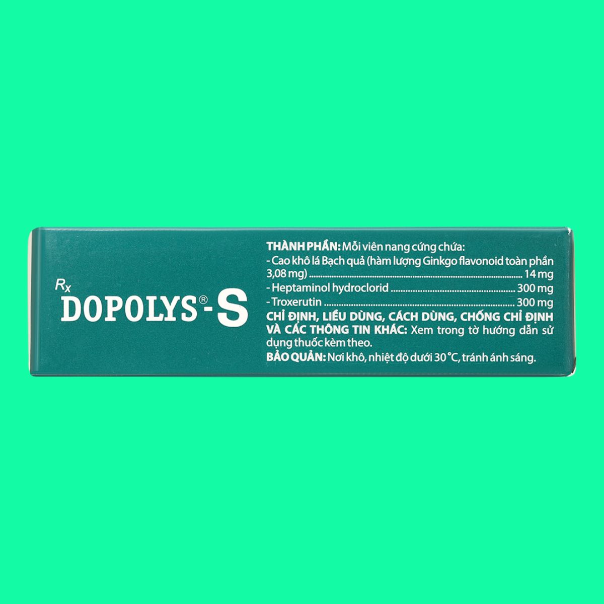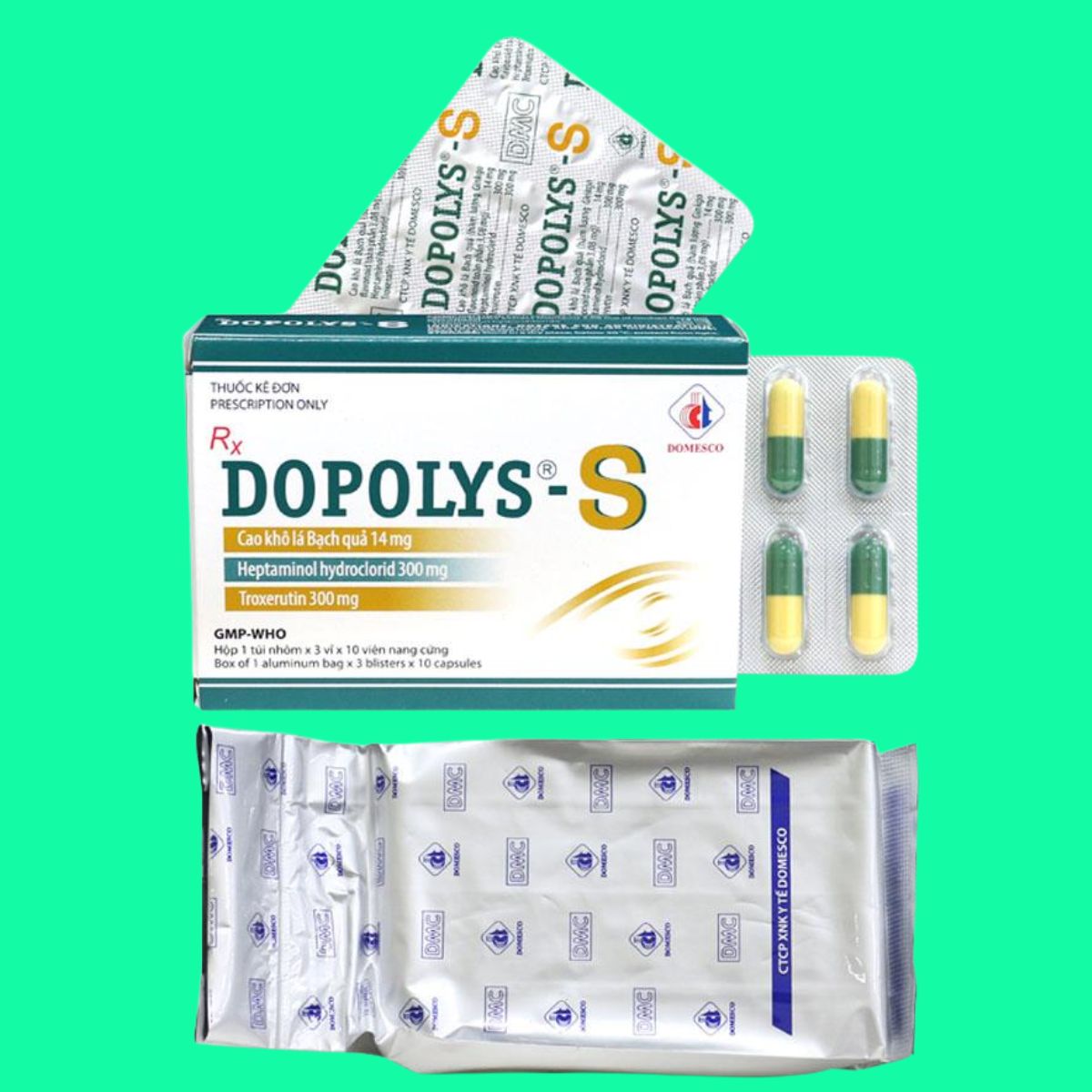 Dopolys-S có tác dụng trợ tĩnh mạch và bảo vệ mạch máu. Thuốc giúp tăng trương lực tĩnh mạch, làm bền mao mạch, giảm tính thấm thành mạch. Ngoài ra, thuốc còn ức chế tác động của các chất trung gian gây viêm và đau như histamin, serotonin, bradykinin, đồng thời hạn chế hoạt động của enzym tiêu hủy lysosom và gốc tự do, từ đó góp phần ngăn ngừa thoái hóa sợi collagen. Heptaminol hydroclorid trong công thức còn giúp cải thiện hồi lưu tĩnh mạch về tim phải.