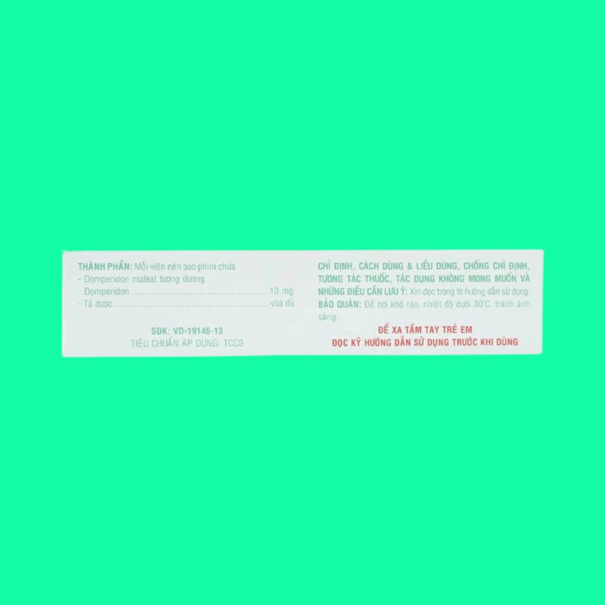 - Domperidon (dưới dạng Domperidon maleat) 10mg