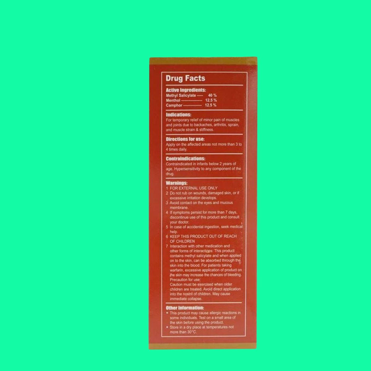 Sử dụng một lượng dầu vừa đủ thoa lên vùng bị đau, sử dụng 3-4 lần mỗi ngày hoặc theo hướng dẫn của bác sĩ.