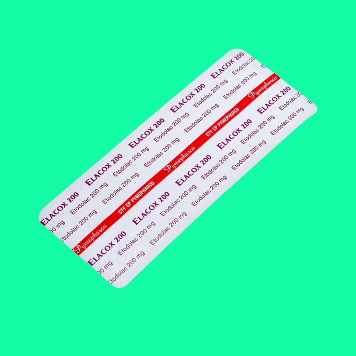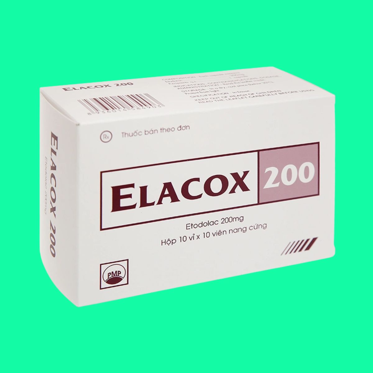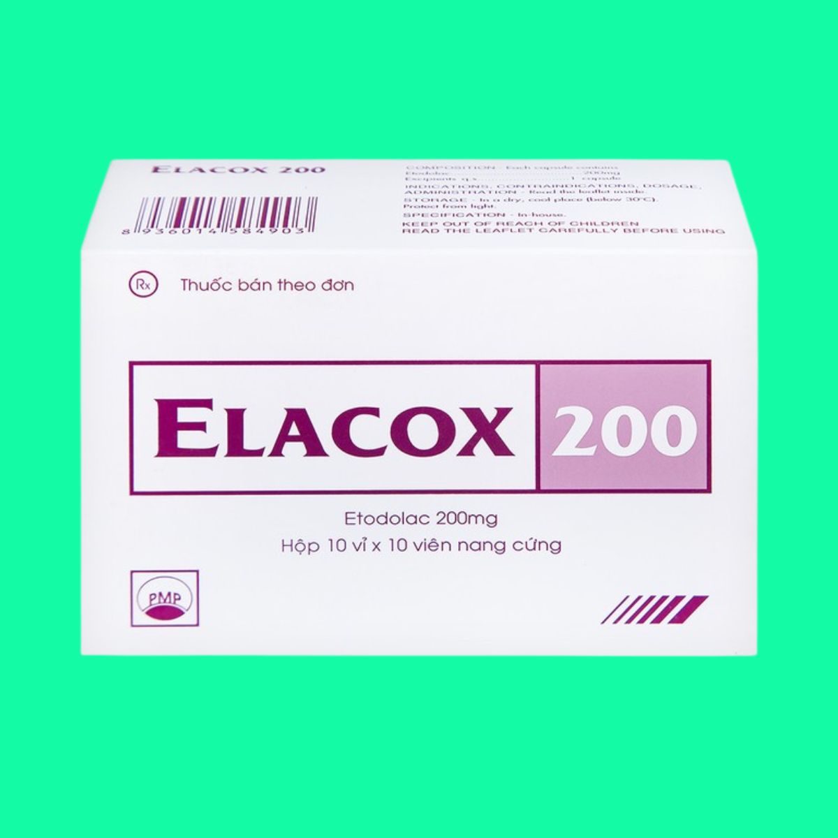 - Chống chỉ định dùng Elacox 200 cho người mẫn cảm với etodolac hoặc tá dược trong thuốc, bệnh nhân có tiền sử hen suyễn, mề đay, dị ứng, thiếu máu cục bộ, bệnh mạch máu não, suy tim nhẹ- nặng, bệnh động mạch ngoại biên.