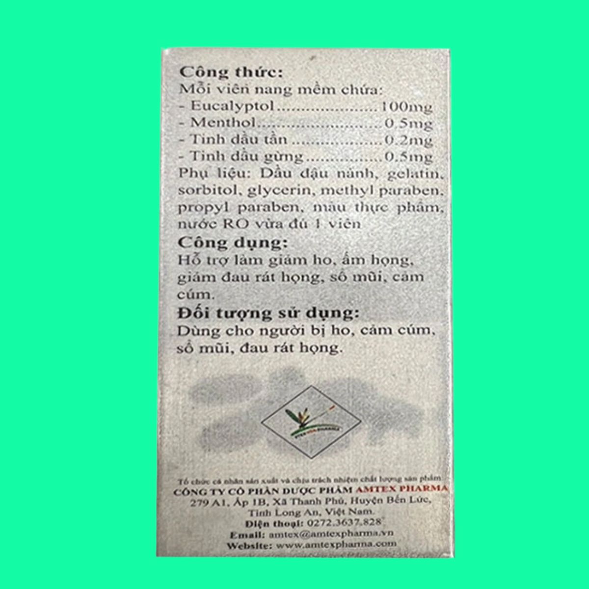 Trong bài viết này, dược sĩ Lưu Văn Hoàng giới thiệu đến các bạn sản phẩm Eucatex được sản xuất bởi CÔNG TY CỔ PHẦN DƯỢC PHẨM AMTEX PHARMA có số đăng ký lưu hành tại Việt Nam là 51/2018/DKSP