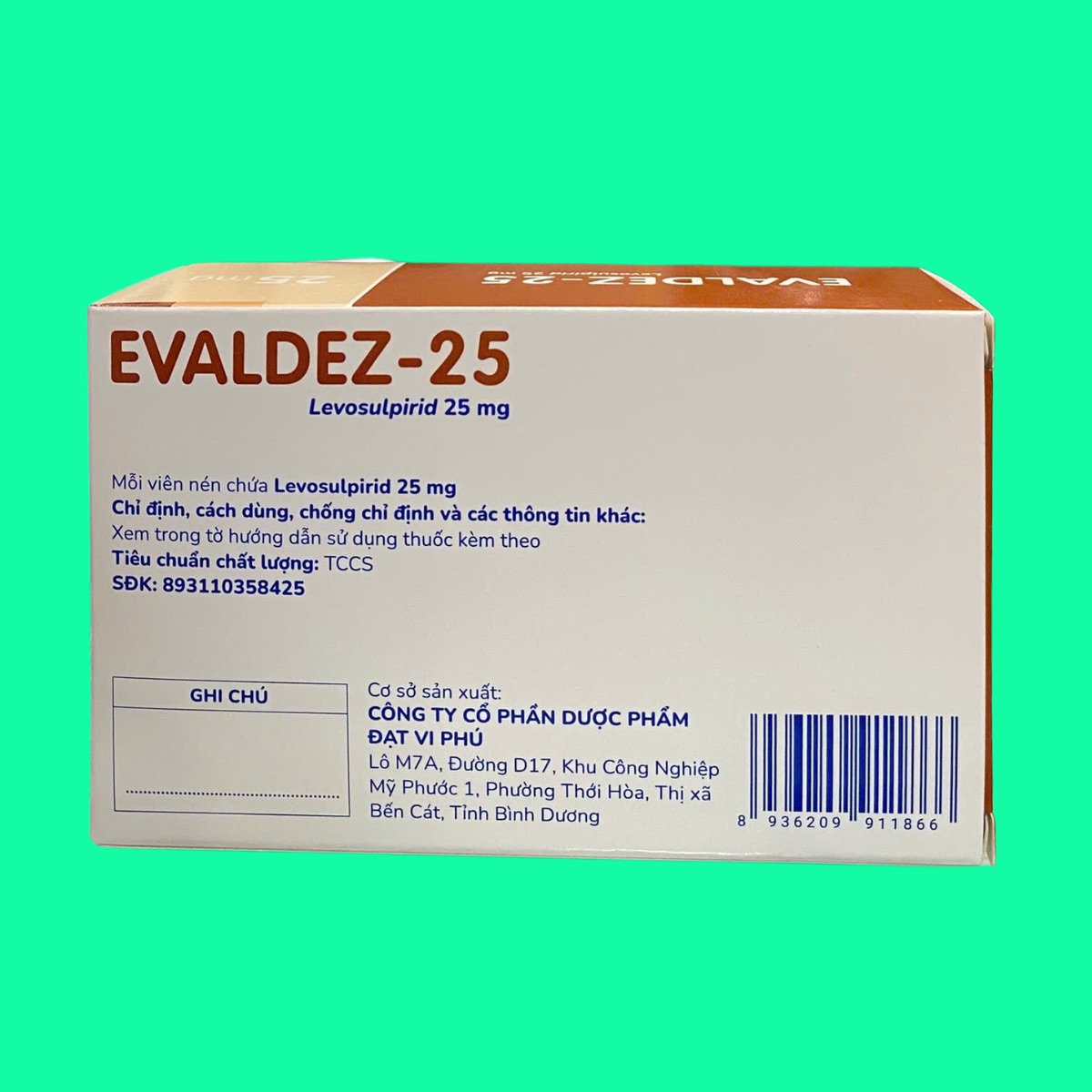 Trong bài viết này, dược sĩ Lưu Văn Hoàng giới thiệu đến các bạn thuốc Evaldez-25 được sản xuất bởi Công ty Cổ phần Dược phẩm Đạt Vi Phú có số đăng ký lưu hành tại Việt Nam là VD-34676-20