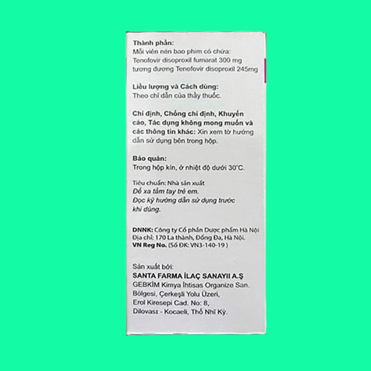 Thuốc Evasif 245mg được chỉ định trong điều trị viêm gan B mạn tính và hỗ trợ điều trị HIV-1 ở bệnh nhân trưởng thành, sản xuất bởi Santa Farma İlaç Sanayii Anonim Şirketi