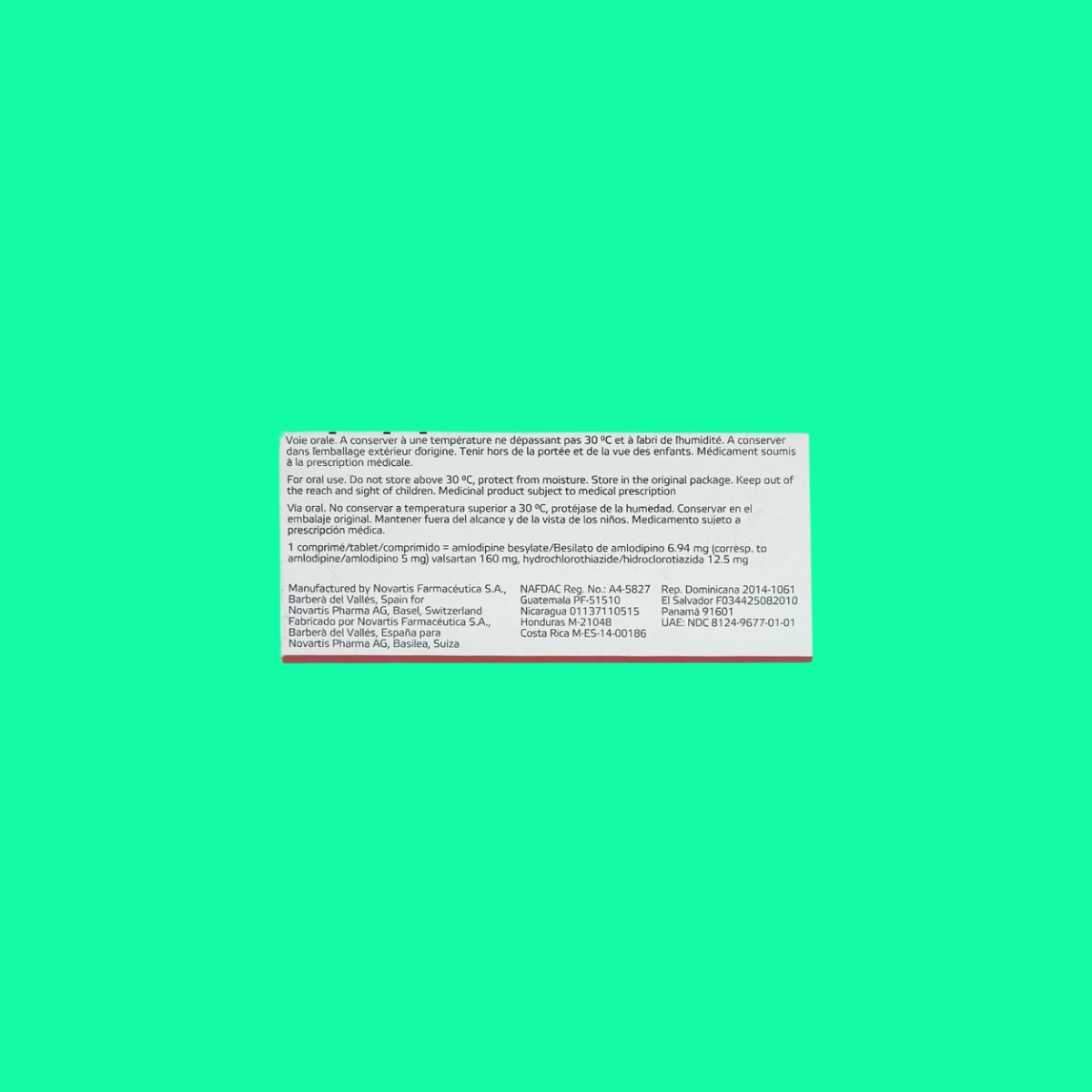 Trong bài viết này, dược sĩ Lưu Văn Hoàng giới thiệu đến các bạn sản phẩm thuốc Exforge HCT 5mg/160mg/12.5mg được sản xuất bởi Siegfried Barbera, S.L., có số đăng ký lưu hành tại Việt Nam là 840110079223 (VN-19289-15).