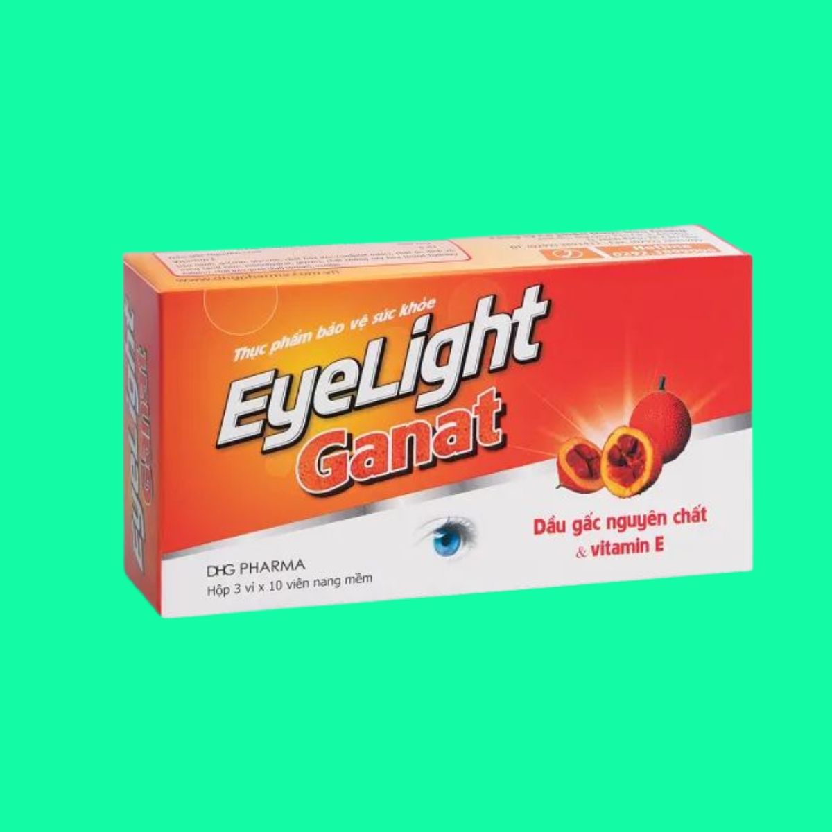 Eyelight Ganat DHG với hai thành phần chính là dầu gấc và vitamin E giúp tăng cường yếu tố bảo vệ mắt, cải thiện thị lực, giảm triệu chứng mờ mắt, mỏi mắt, hạn chế quá trình thoái hóa võng mạc.