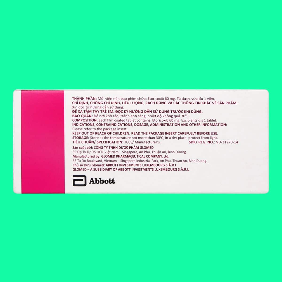 Thuốc Flexidron 60 có chứa thành phần: Etoricoxib 60mg