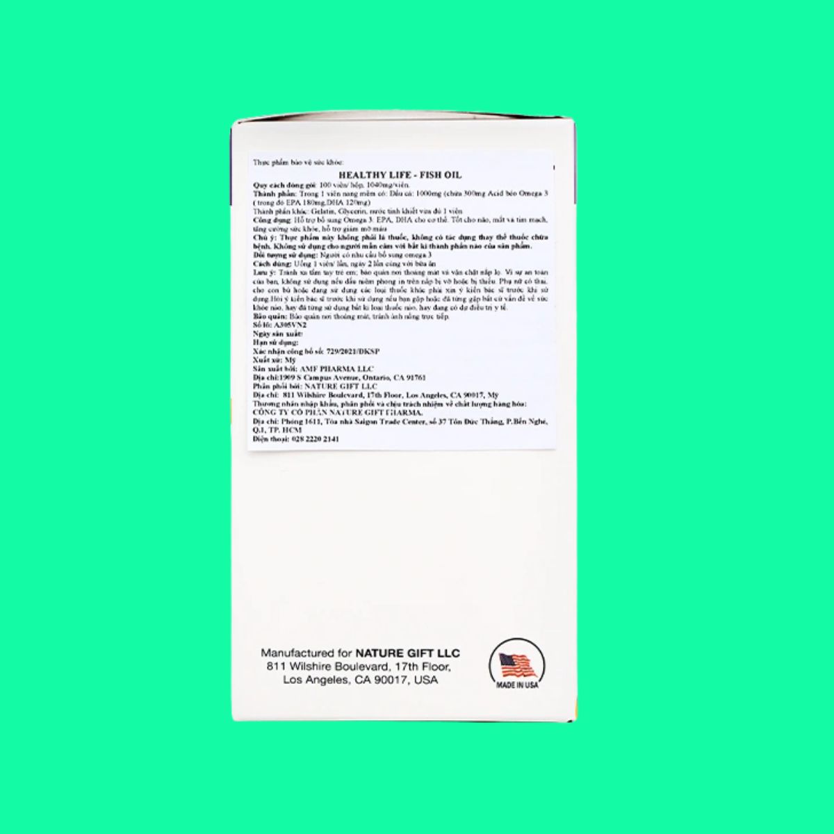 Healthy Life – Fish Oil hỗ trợ bổ sung DHA và EPA từ dầu cá cho cơ thể, cải thiện chức năng tim mạch, tăng cường hoạt động não bộ, duy trì thị lực, sản xuất bởi AMF PHARMA, LLC