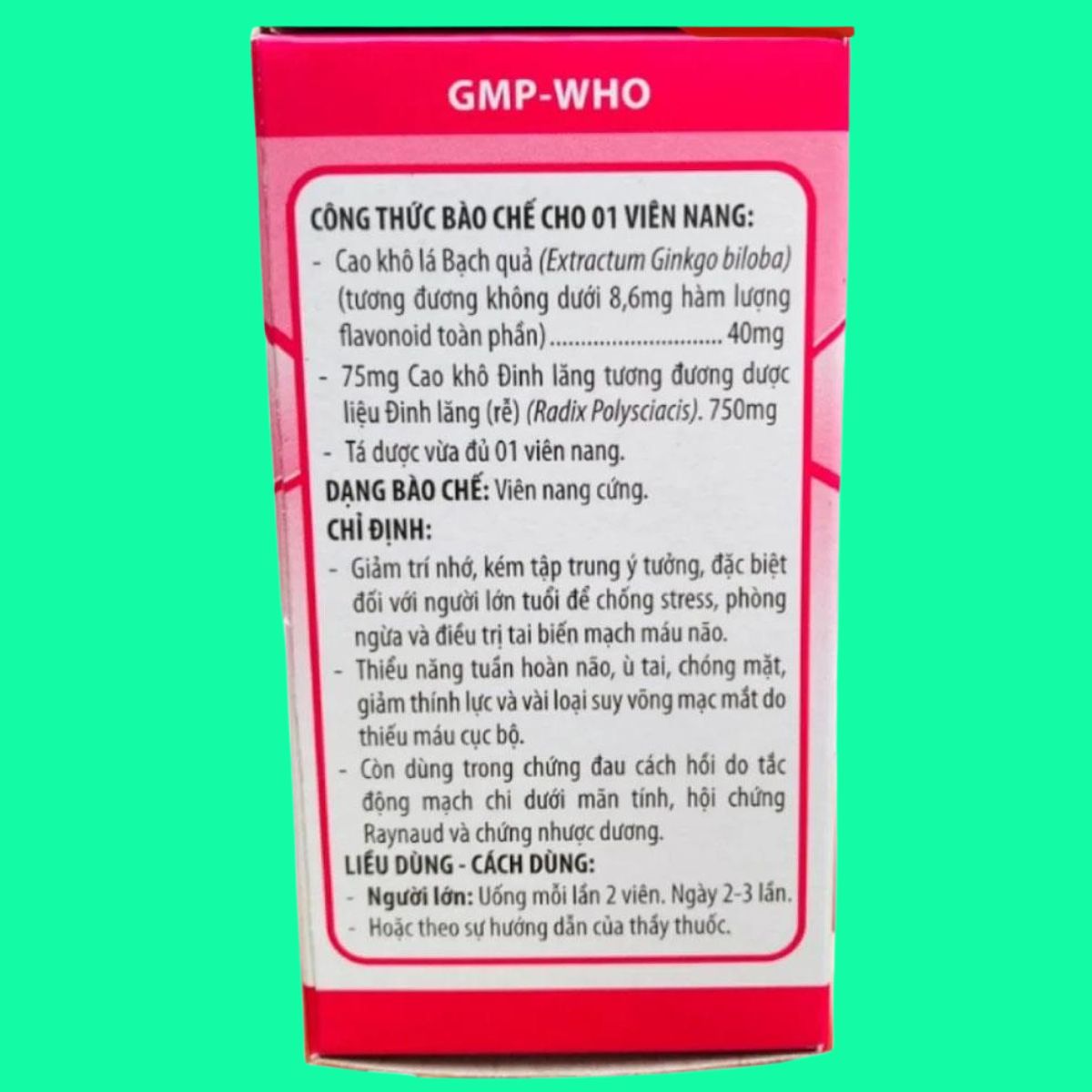 - Cao khô lá Bạch quả: 40mg