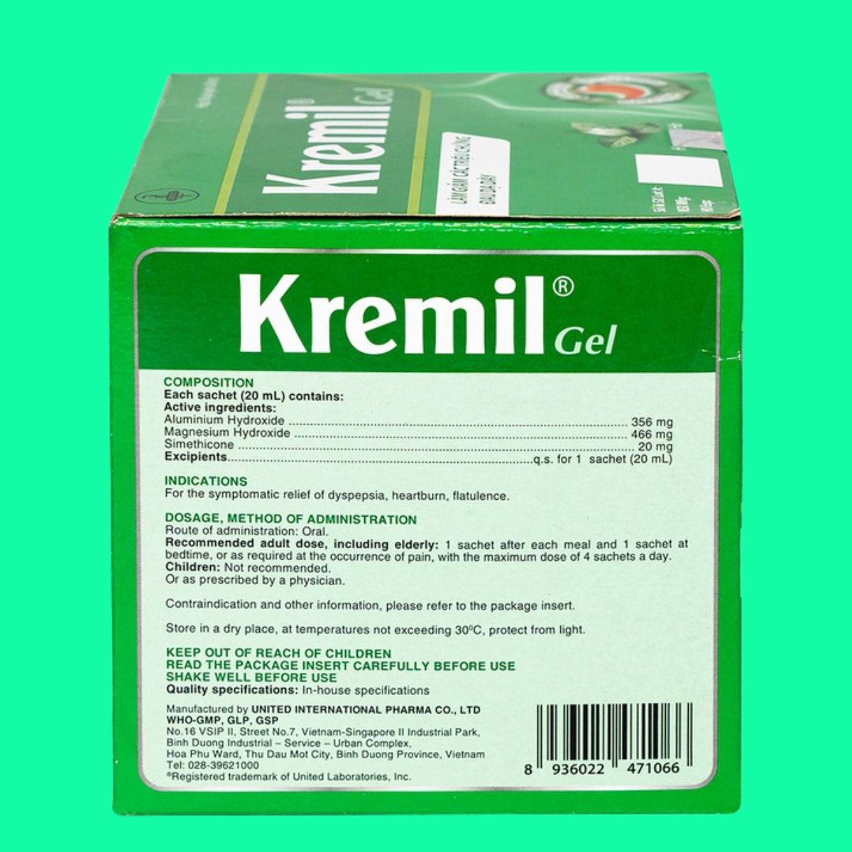 Trong bài viết này, dược sĩ Lưu Văn Hoàng giới thiệu đến các bạn thuốc Kremil Gel được sản xuất bởi Công ty TNHH United International Pharma có số đăng ký lưu hành tại Việt Nam là 893100223524 (SĐK cũ: VD-25066-16)