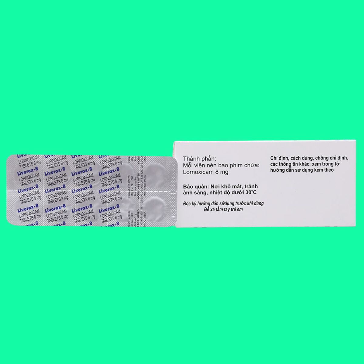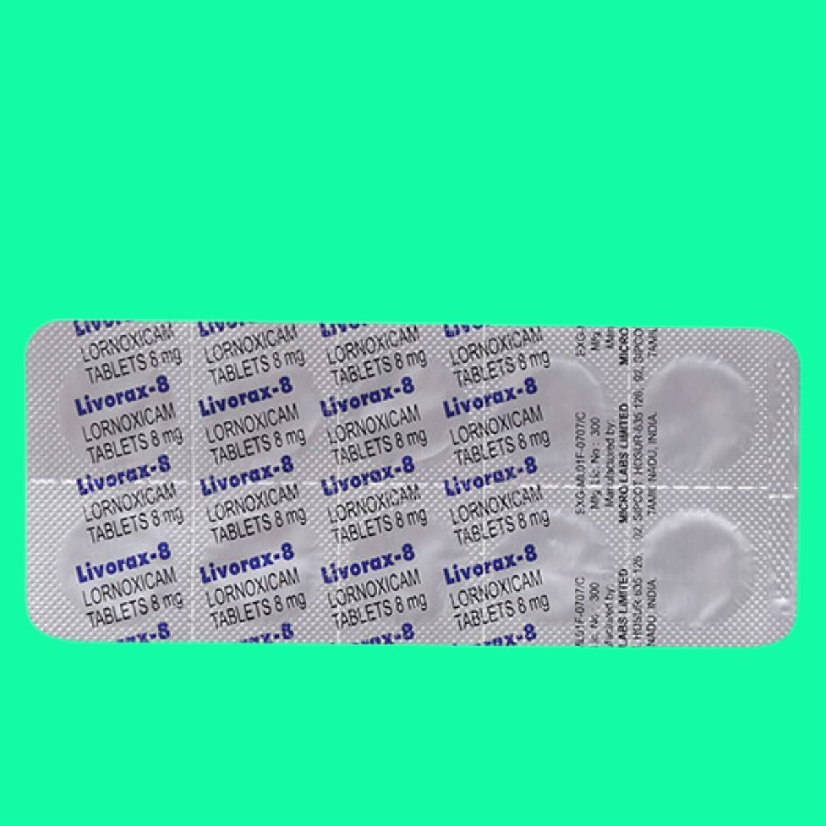 Lornoxicam là hoạt chất thuộc nhóm thuốc chống viêm không steroid (NSAID) có đặc tính giảm đau và hạ viêm mạnh. Thuốc ức chế enzym cyclooxygenase (COX), từ đó làm giảm sự hình thành của prostaglandin – các chất trung gian gây viêm, đau và sốt. Nhờ đó, Livorax-8 giúp làm dịu cơn đau, giảm sưng viêm tại khớp và cải thiện khả năng vận động của người bệnh mà không ảnh hưởng đến hệ thần kinh trung ương