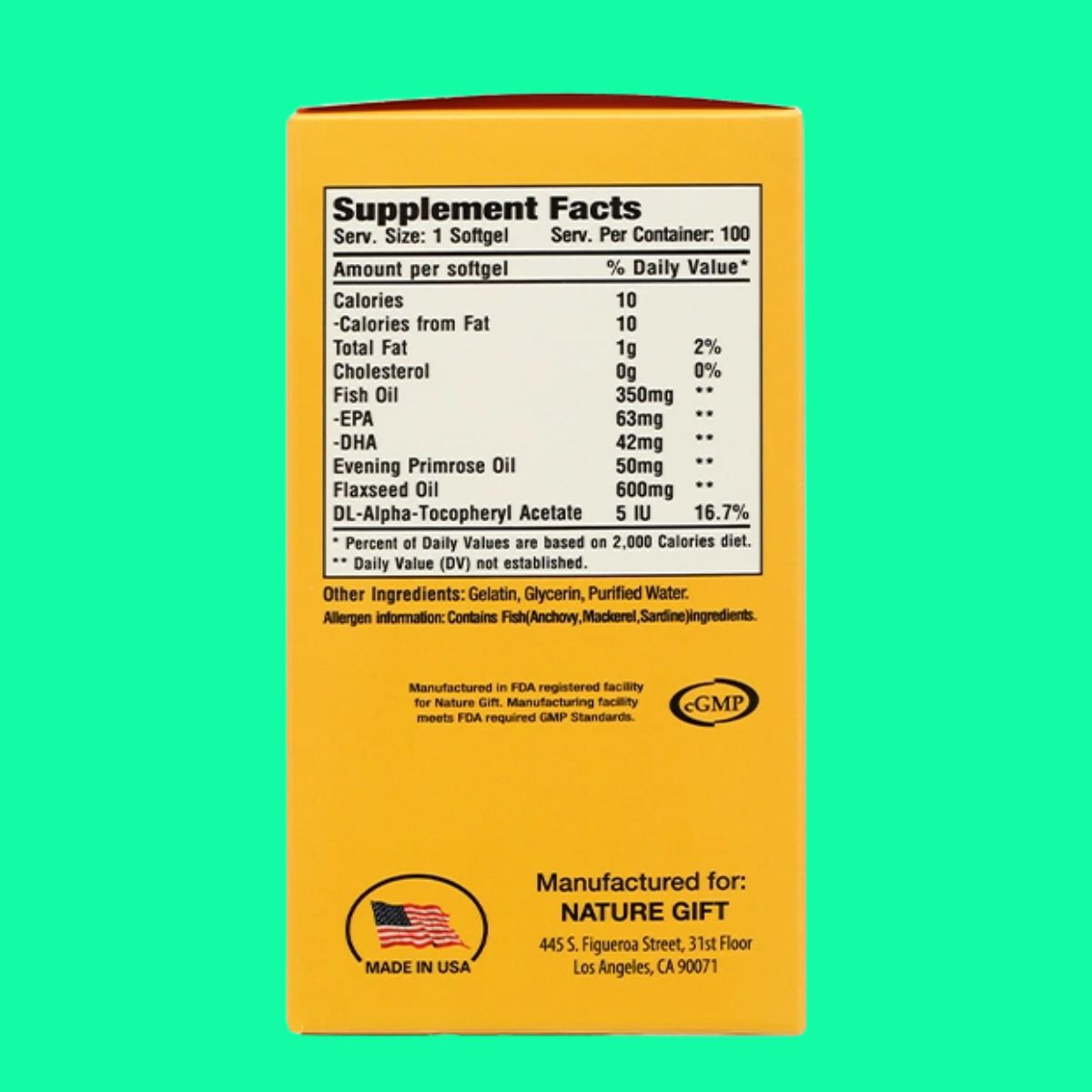 Người có mẫn cảm với dầu cá, dầu hạt lanh, dầu hoa anh thảo,… và phụ liệu có trong Nature Gift Omega 3-6-9 EPA DHA Fish oil
