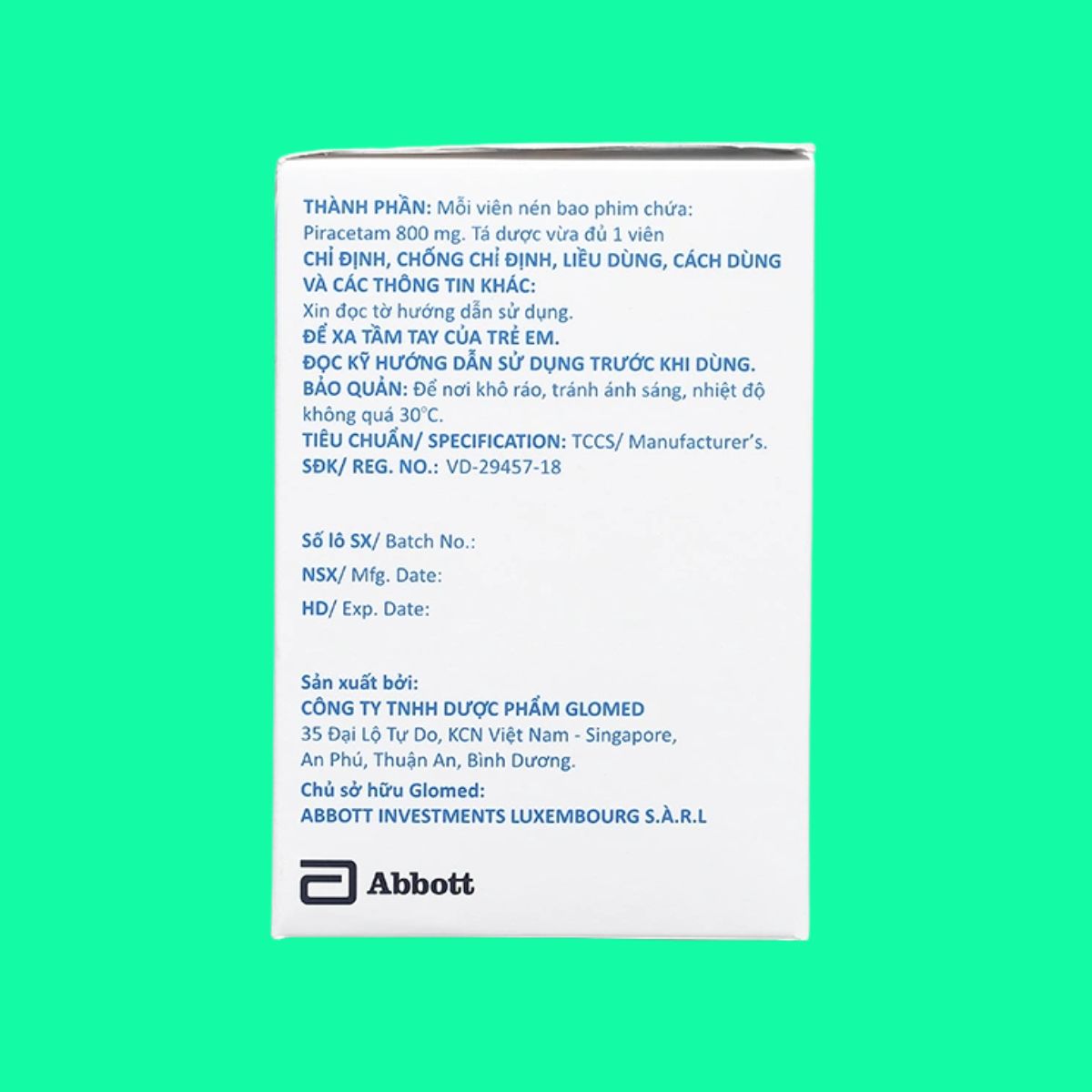 Trong bài viết này, dược sĩ Lưu Văn Hoàng giới thiệu đến các bạn sản phẩm thuốc Nootryl 800 được sản xuất bởi Công ty TNHH Abbott Healthcare Việt Nam, có số đăng ký lưu hành tại Việt Nam là 893110325423 (SĐK cũ: VD-29457-18).