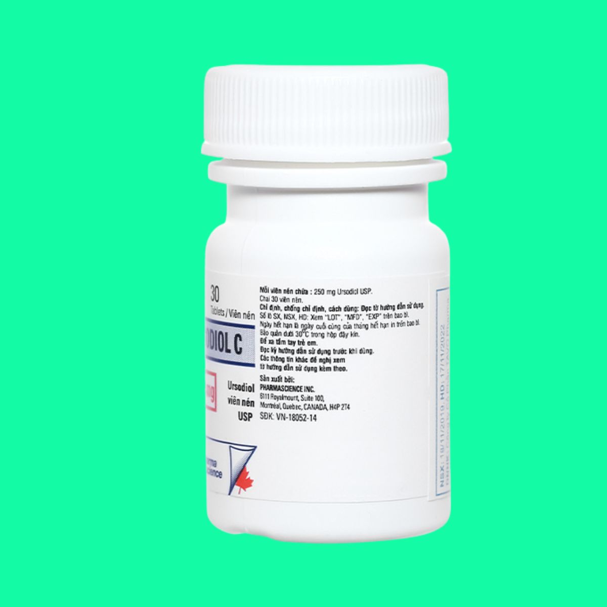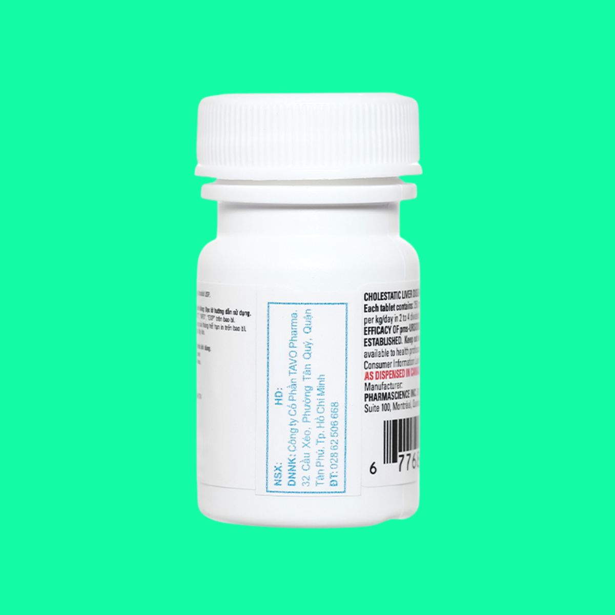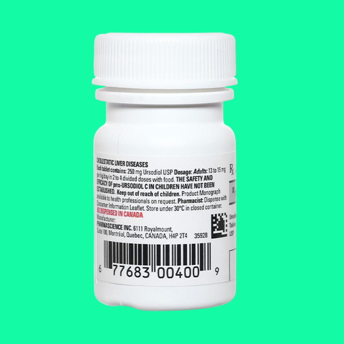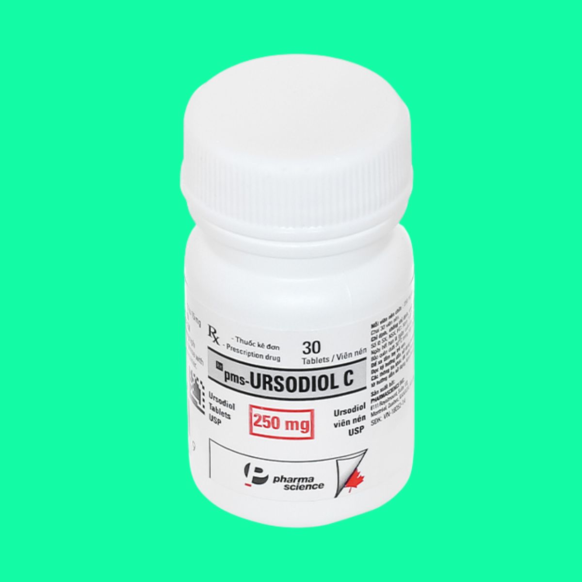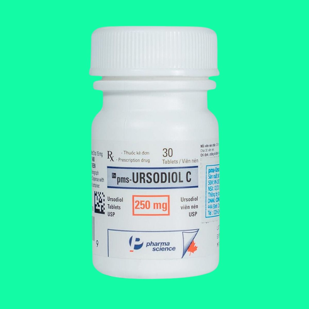 Thuốc pms-Ursodiol C 250mg được chỉ định trong điều trị xơ gan ứ mật nguyên phát, làm tan sỏi mật thấu xạ ở bệnh nhân còn hoạt động túi mật, sản xuất bởi Pharmascience Inc