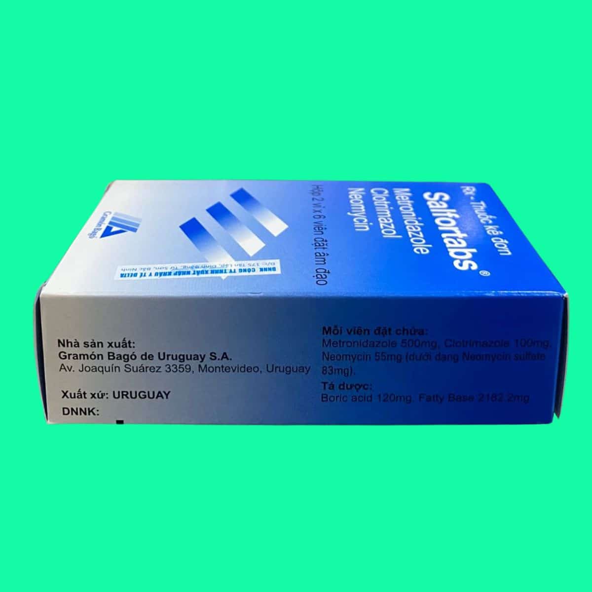 - Thuốc viên Salfortabs dùng để đặt âm đạo.
