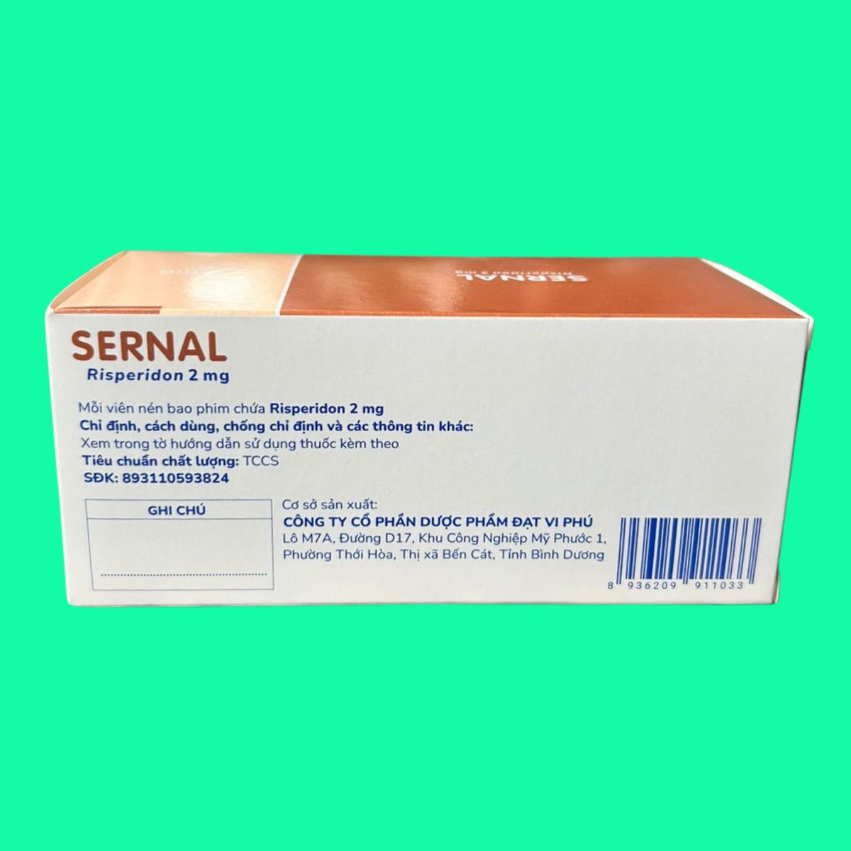 Nhà thuốc online Lưu Văn Hoàng xin giới thiệu đến quý khách sản phẩm thuốc Sernal 2mg được sản xuất tại Công ty CP Dược phẩm Đạt Vi Phú (DAVIPHARM), số đăng ký lưu hành tại Việt Nam là 893110593824 (số cũ: VD-26503-17) do Công ty CP Dược phẩm Đạt Vi Phú (DAVIPHARM) đăng ký.