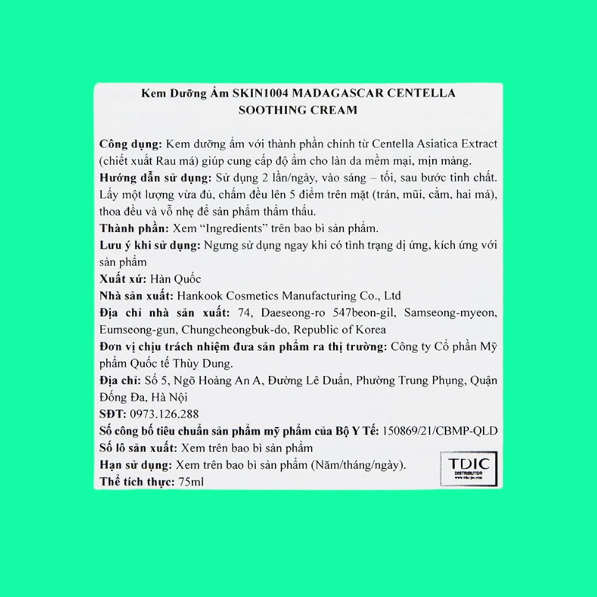 - Skin1004 Madagascar Centella Soothing Cream chỉ dùng bôi ngoài da, tránh tiếp xúc với mặt