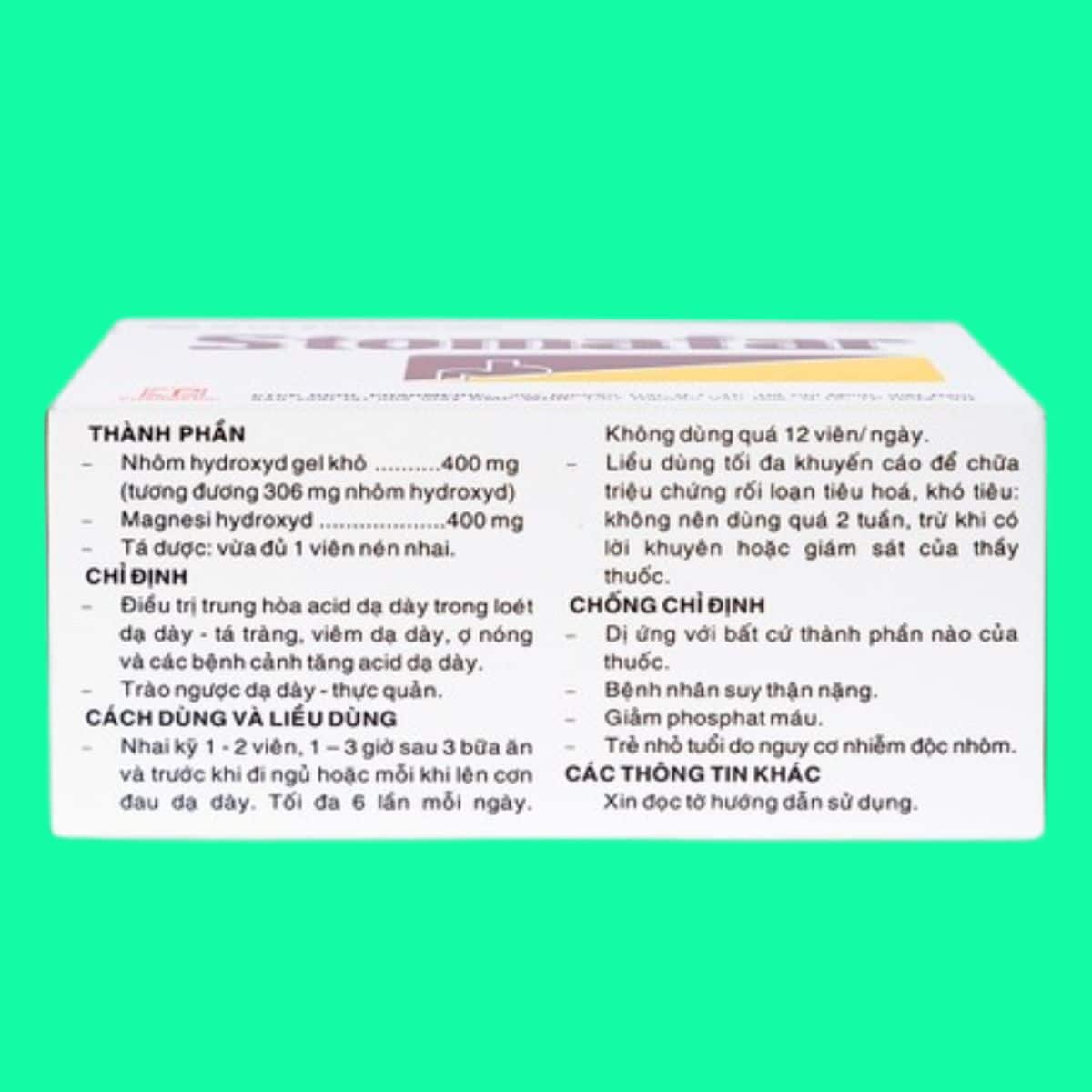 - Nhôm hydroxyd dạng gel khô: 400 mg (tương đương 306 mg nhôm hydroxyd)
