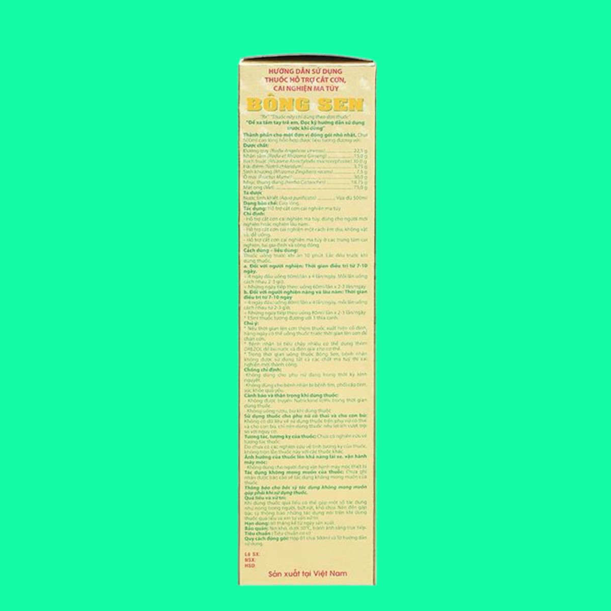 Người nghiện: Thời gian dùng Cao lỏng Bông Sen là từ 7–10 ngày.