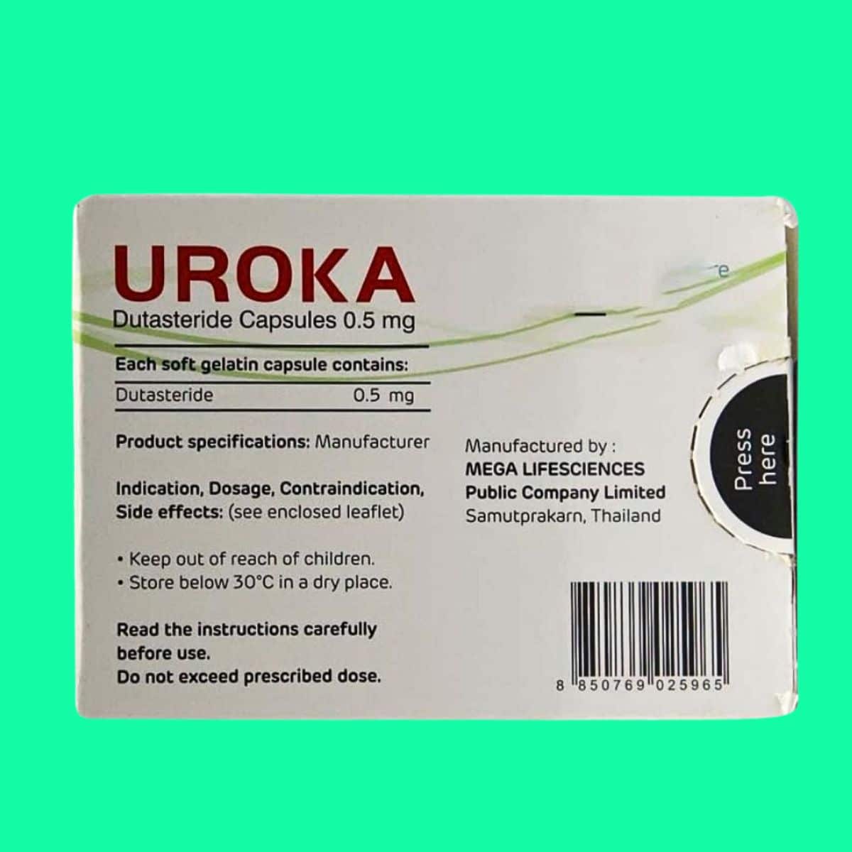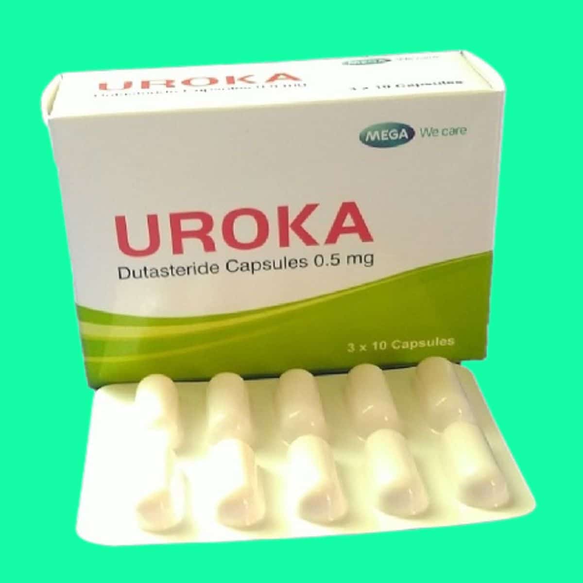 Thuốc UROKA 0.5mg là thuốc chứa hoạt chất dutasteride hàml ượng 0.5mg, được dùng để cải thiện triệu chứng và hạn chế tiến triển của bệnh tăng sản lành tính tuyến tiền liệt.