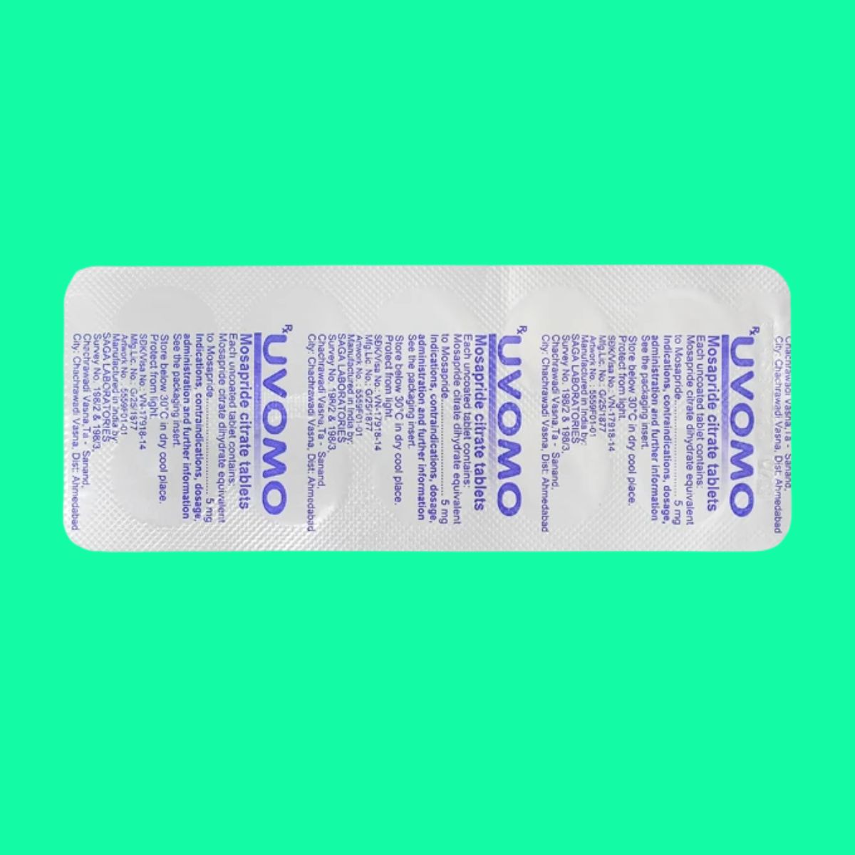 Thuốc Uvomo 5mg điều trị rối loạn tiêu hóa ảnh hưởng đến giảm chuyển động dạ dày, bao gồm các triệu chứng như buồn nôn, nôn, ợ nóng