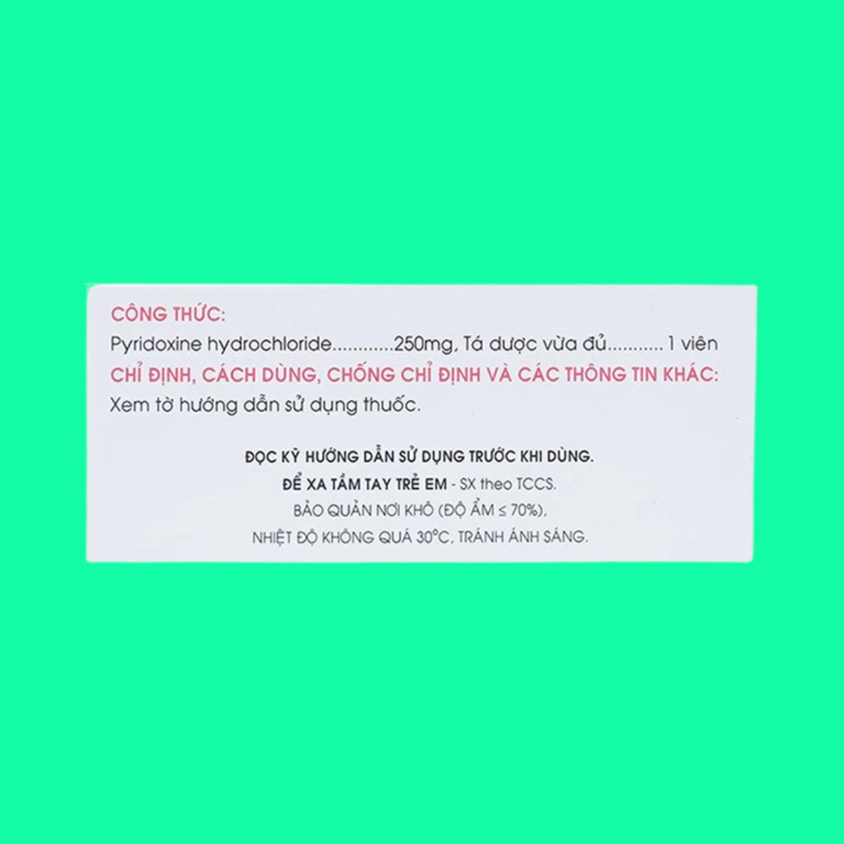 - Pyridoxin HCl 250mg