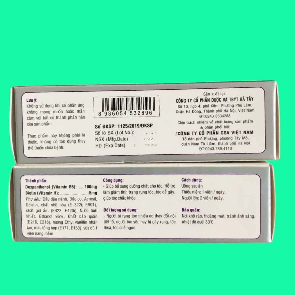 Betina GSV có thành phần chính là biotin và vitamin b5, được sản xuất bởi Công ty CP GSV, hỗ trợ mọc tóc, giảm gãy rụng tóc