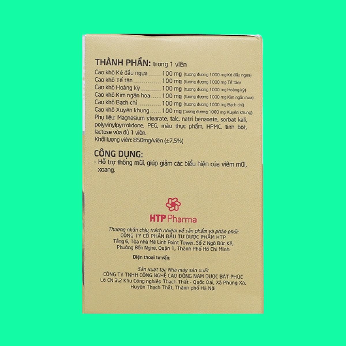 | Cao khô tế tân | 100 mg |