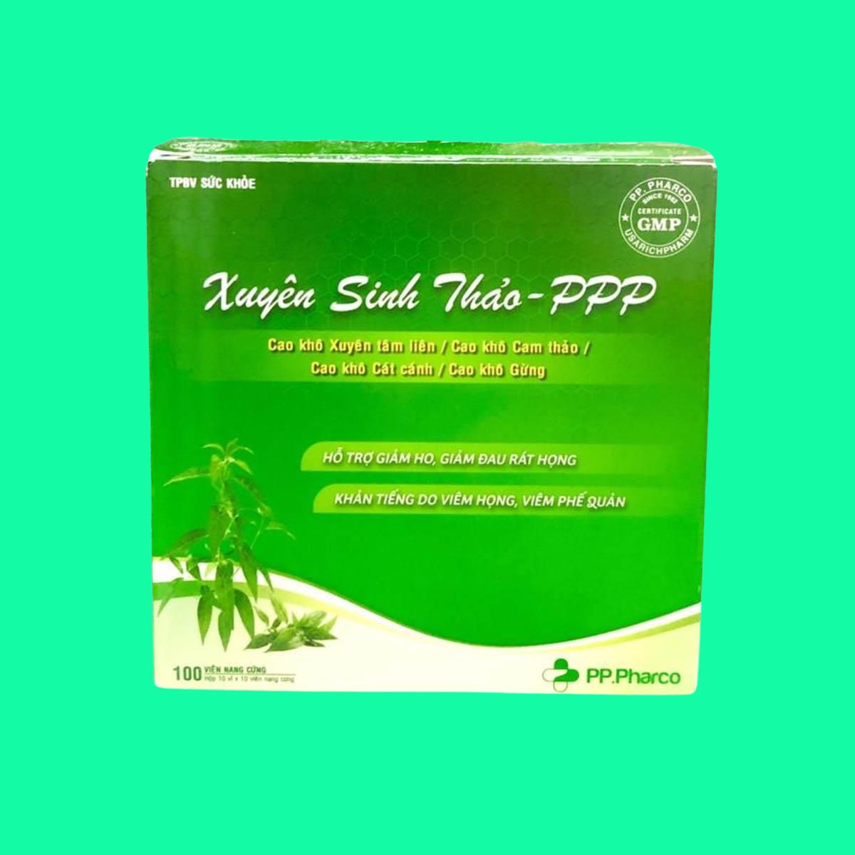 Xuyên Sinh Thảo- PPP có công dụng cải thiện triệu chứng ho khan, ho có đờm, khàn tiếng, khó chịu và đau rát vùng họng, đau họng khi nuốt ở người bị viêm họng và viêm phế quản.