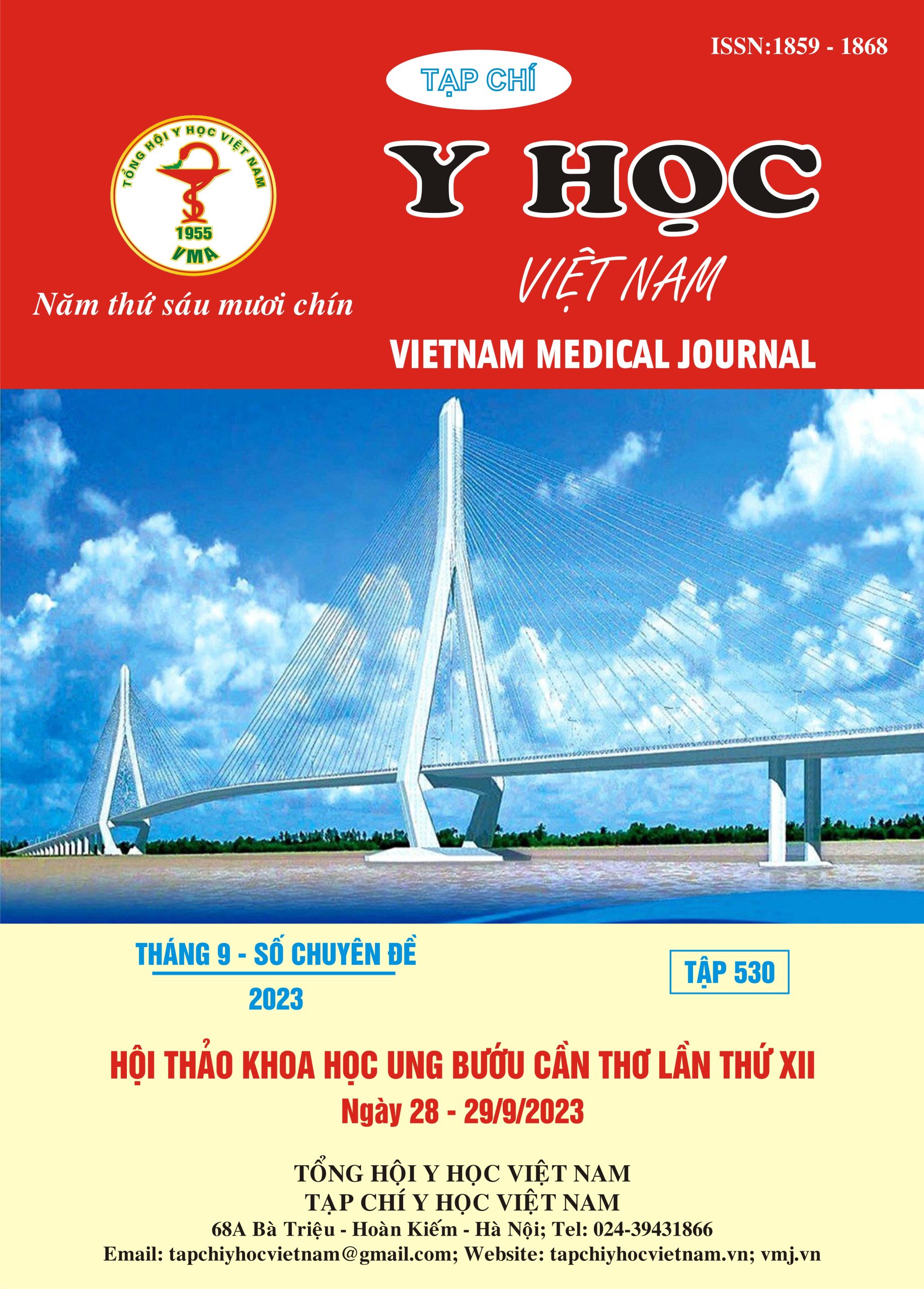 TẠP CHÍ Y HỌC VIỆT NAM TẬP 530 – THÁNG 9 – SỐ CHUYÊN ĐỀ – 2023 tổng hợp Tin tức Cập nhật lần cuối2026-01-14 05:31 UTC+7 23 FacebookTwitterPinterestWhatsApp Tóm tắt nội dungTẠP CHÍ Y HỌC VIỆT NAM TẬP 530 – THÁNG 9 – SỐ CHUYÊN ĐỀ – 2023Tóm tắt Đánh giá Tải/Xem file PDF Tải/Xem file PDF TẠP CHÍ Y HỌC VIỆT NAM TẬP 530 – THÁNG 9 – SỐ CHUYÊN ĐỀ – 2023 Ung Bướu Cần Thơ Tóm tắt Hội thảo Khoa học Ung bướu Cần Thơ lần thứ XII